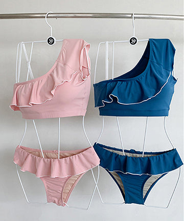 【2色】ビキニ 大人可愛い フリルワンショルダー 水着 XH7-DP-A30166