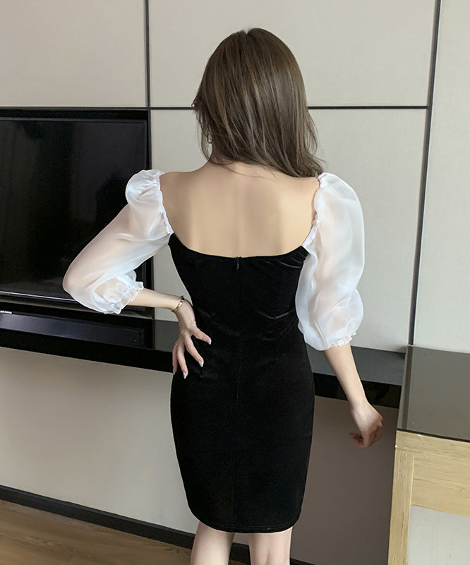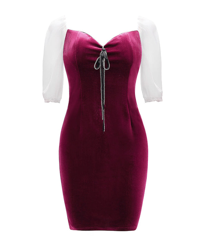 2色 ベルベット レース袖 リボン えちえち かわいい キャバドレス ミニドレス 袖付き MY2-YM8566