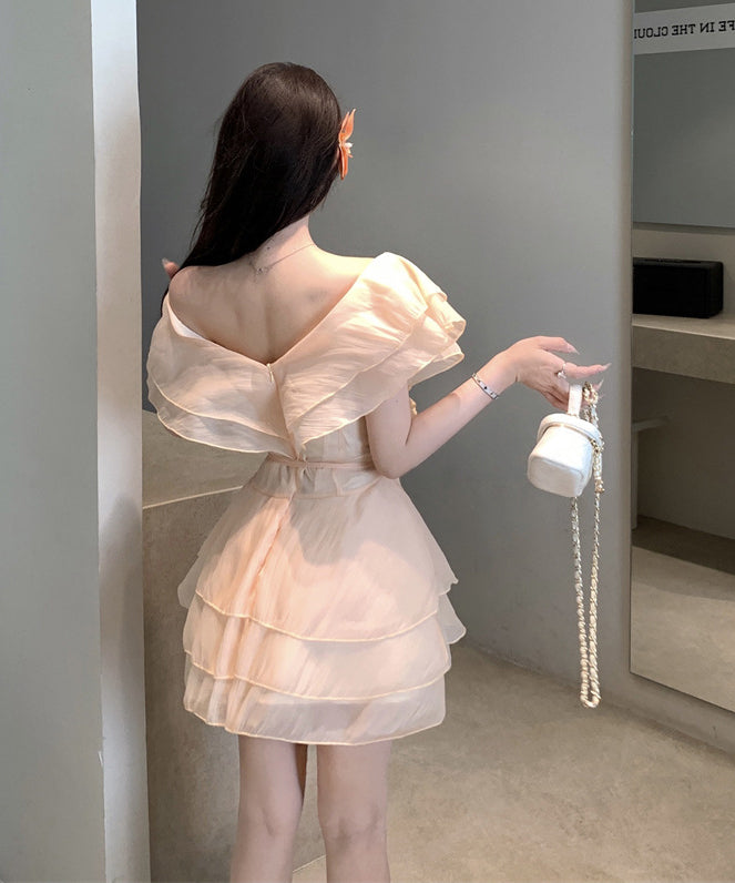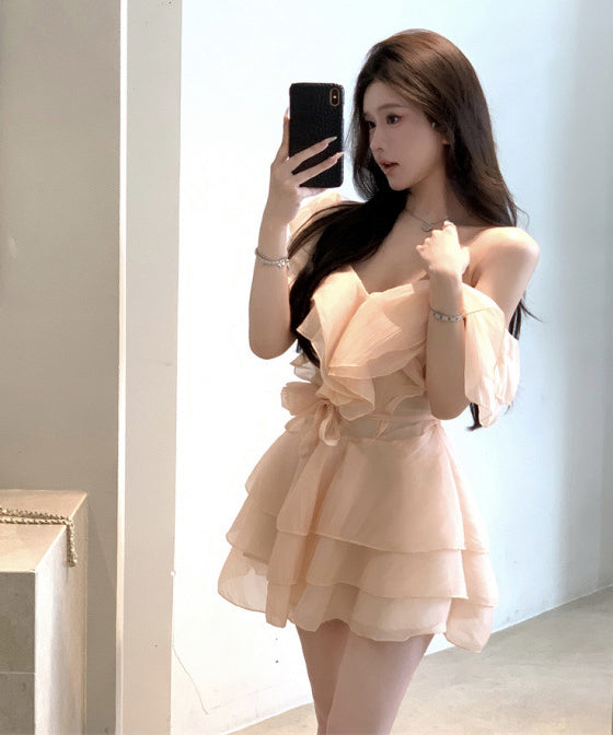 【2色】ミニドレスキャバドレスセクシーフリル着痩せ気質かわいいオフショルダー同伴Aライン WQ2-XKD-D318A-6280-Mar9