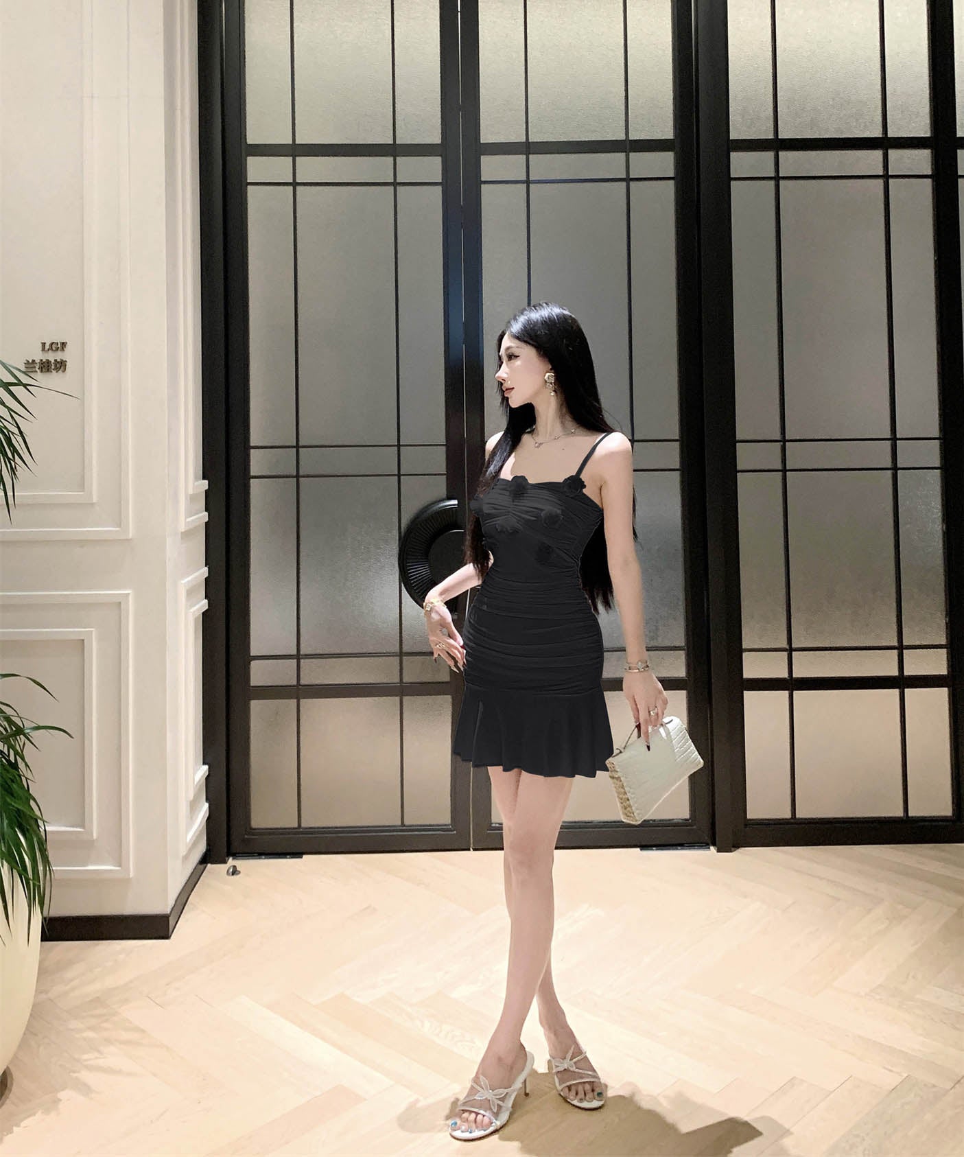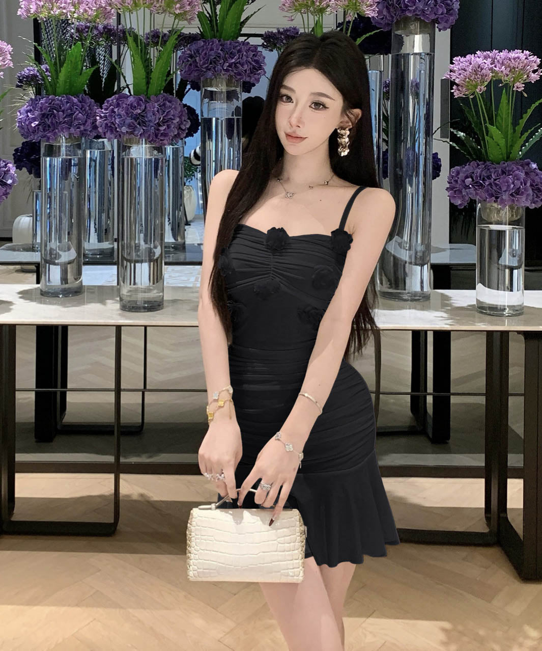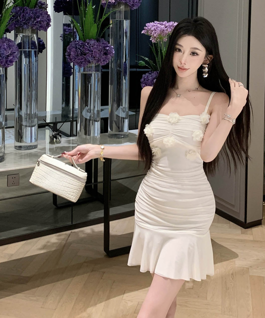 【2色】ミニドレスタイトドレスフリルエレガントフラワーセクシーパーティー大人可愛いキャミワンピ WQ2-SJHY10841