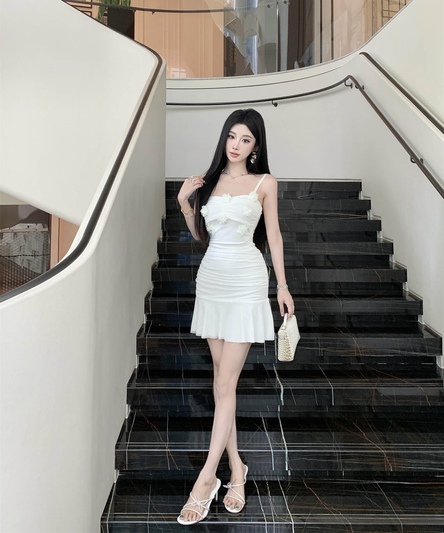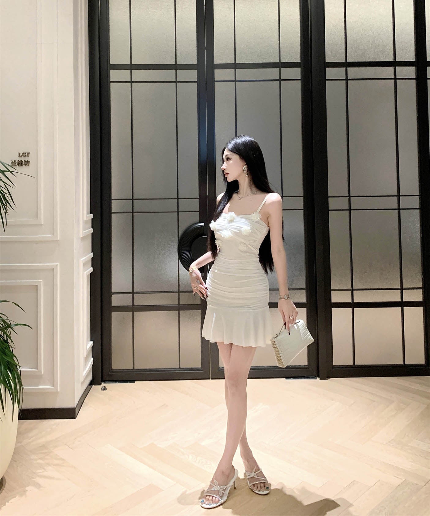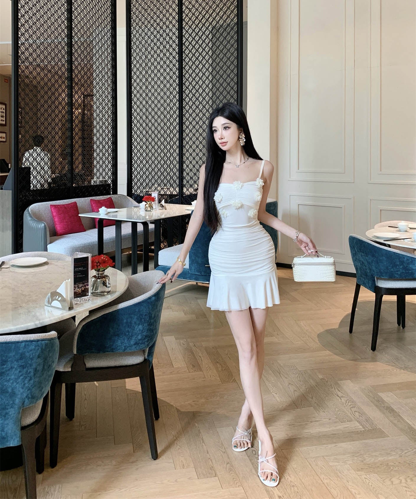 【2色】ミニドレスタイトドレスフリルエレガントフラワーセクシーパーティー大人可愛いキャミワンピ WQ2-SJHY10841