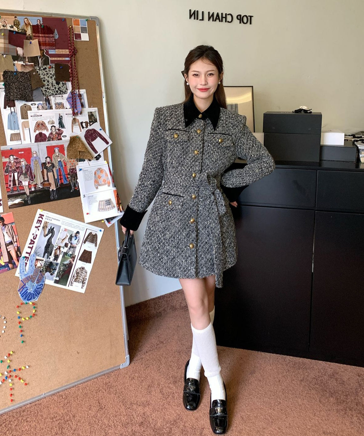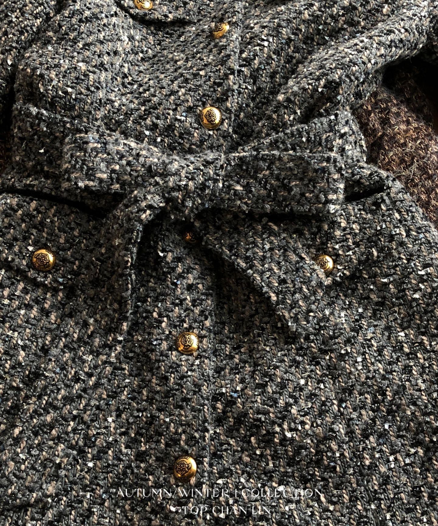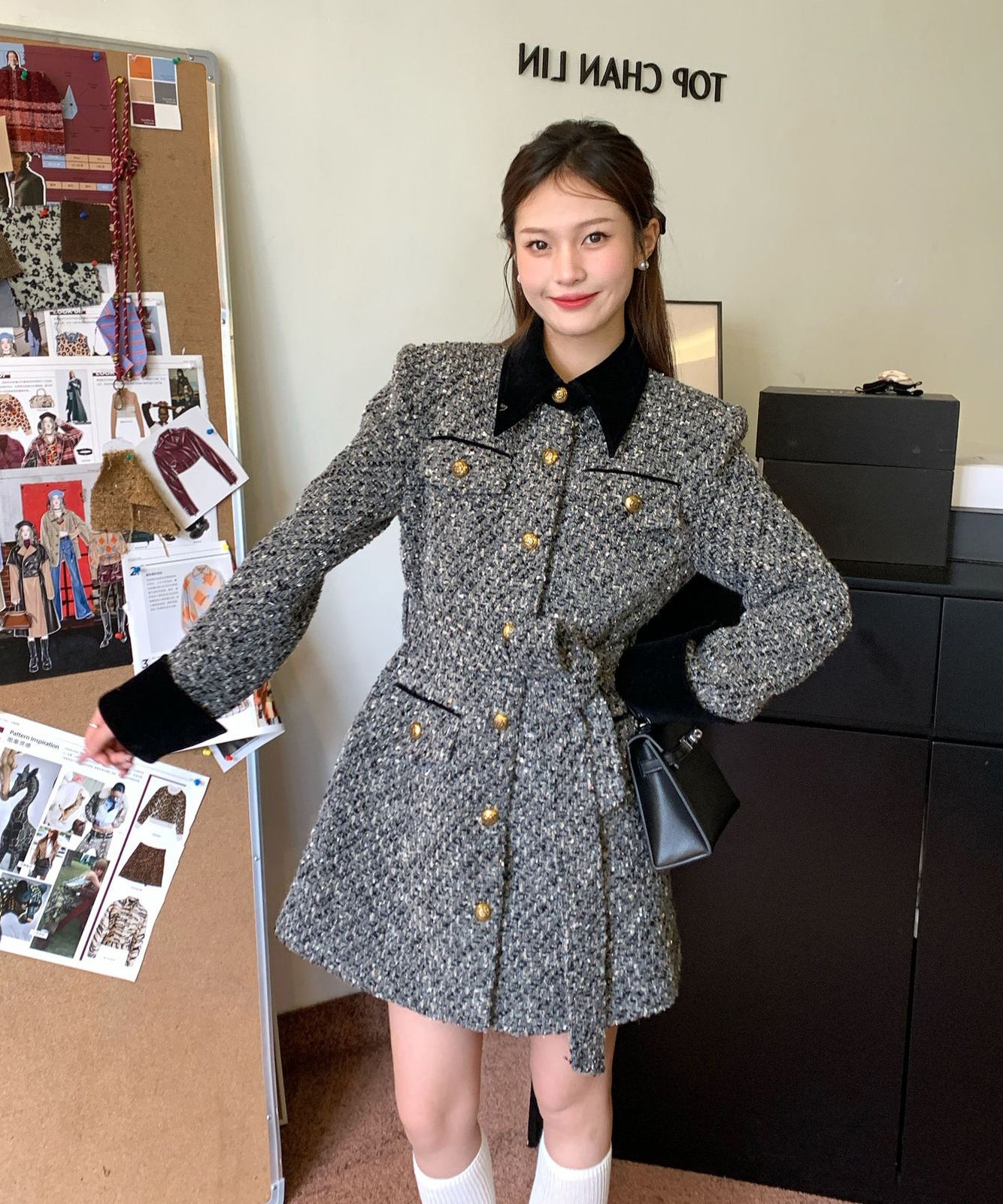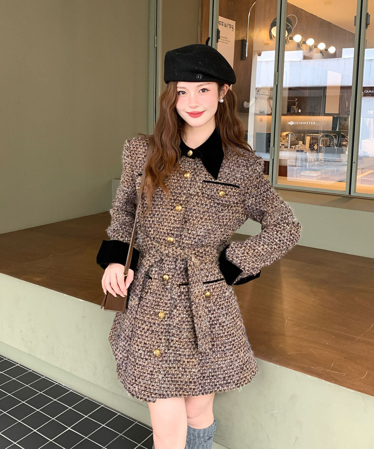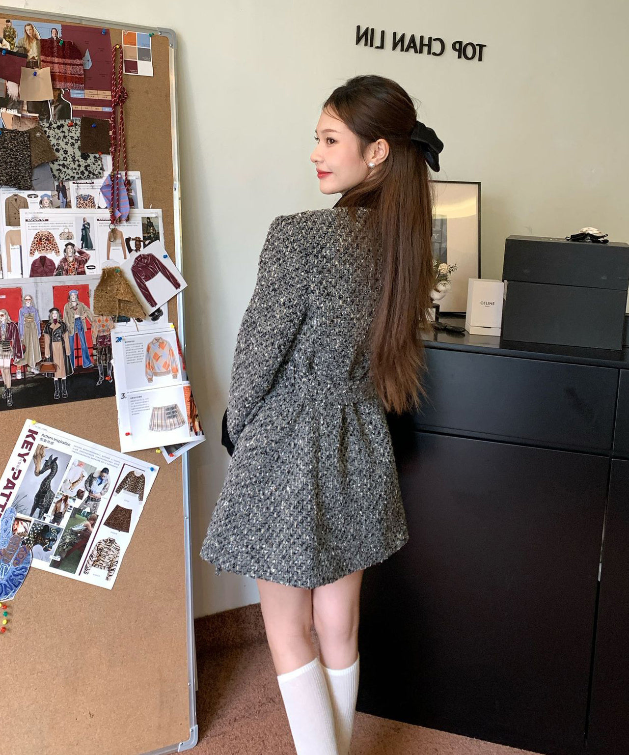 【2色】ミニドレスツイードセレブ風高級感秋冬エレガント着痩せ気質韓国っぽXH2-TCL25177L