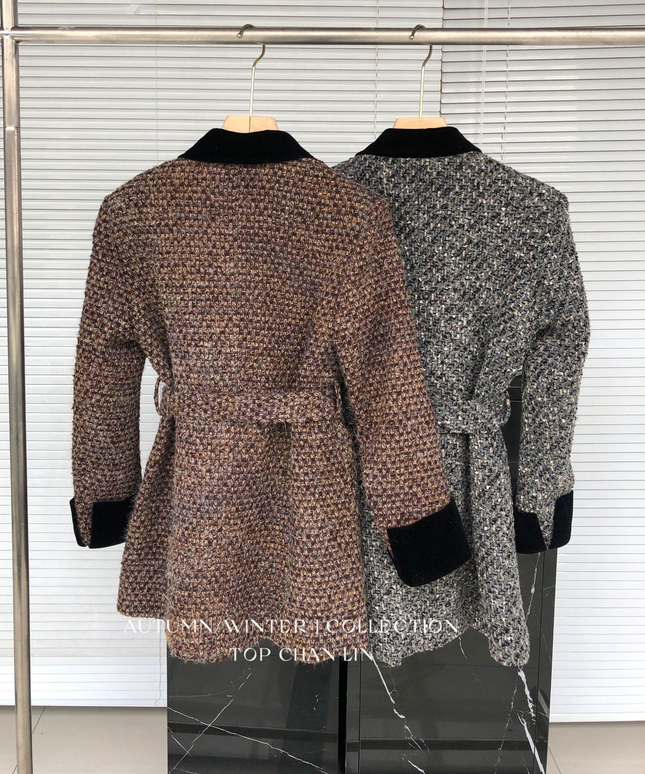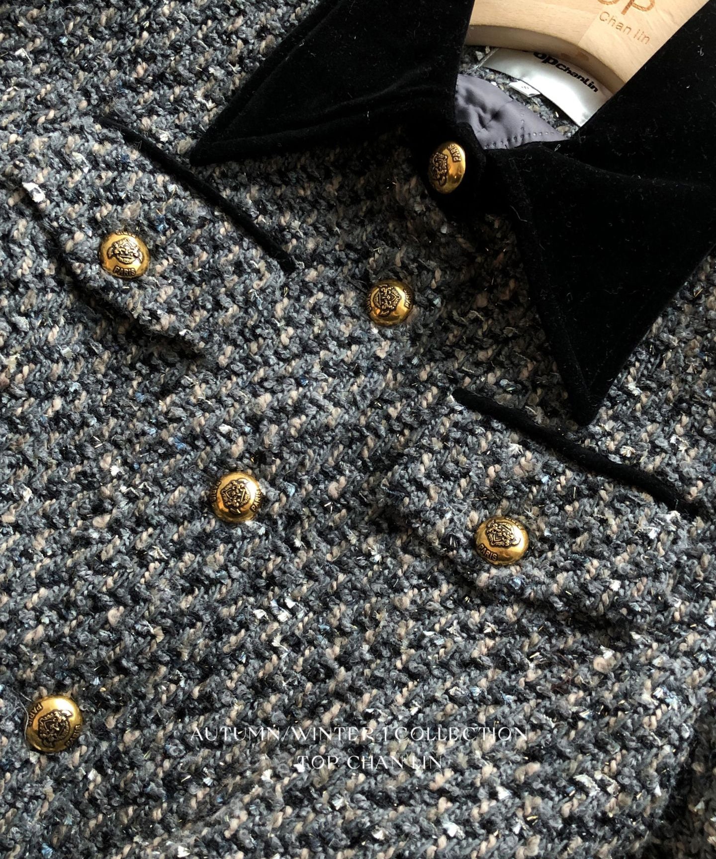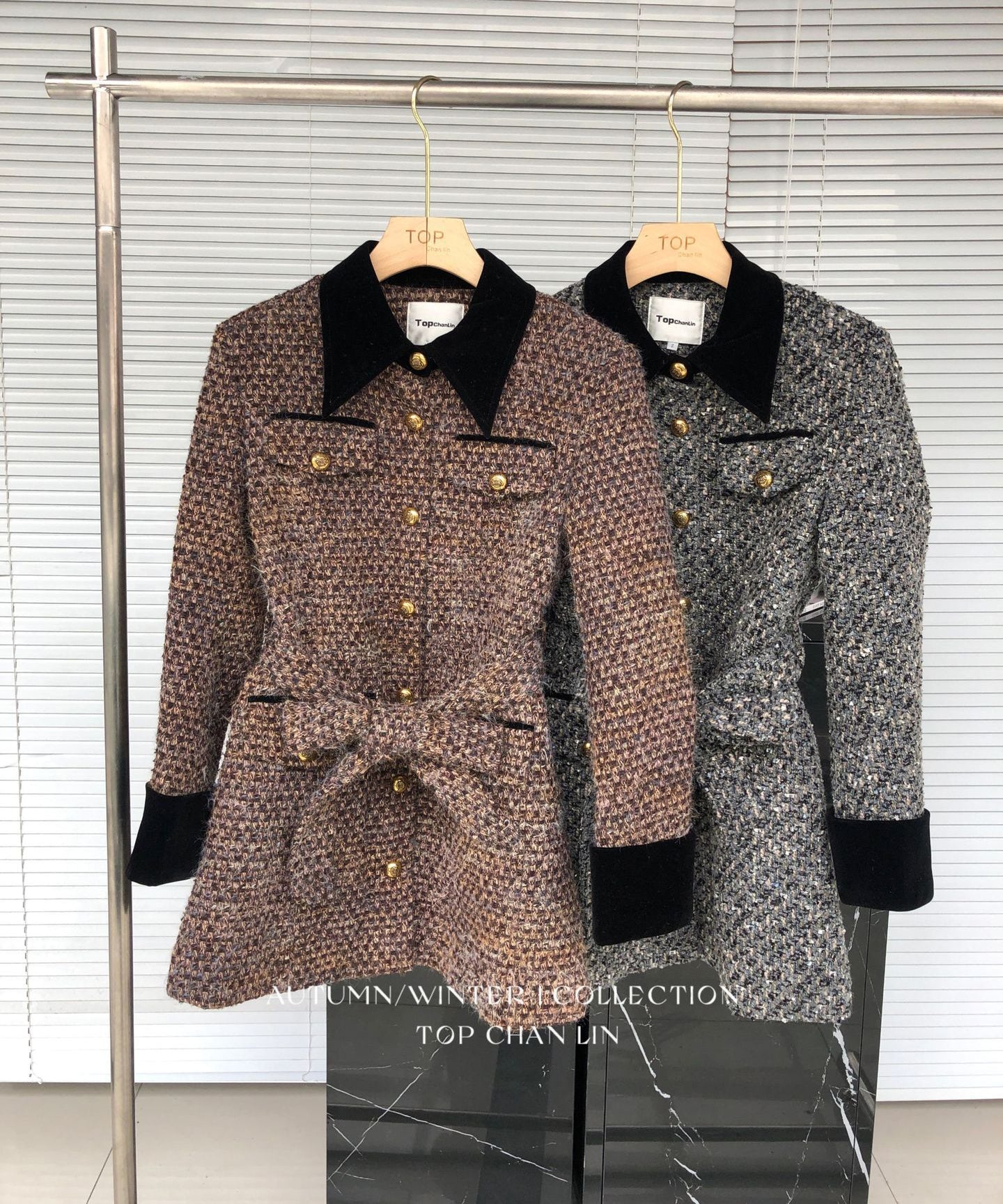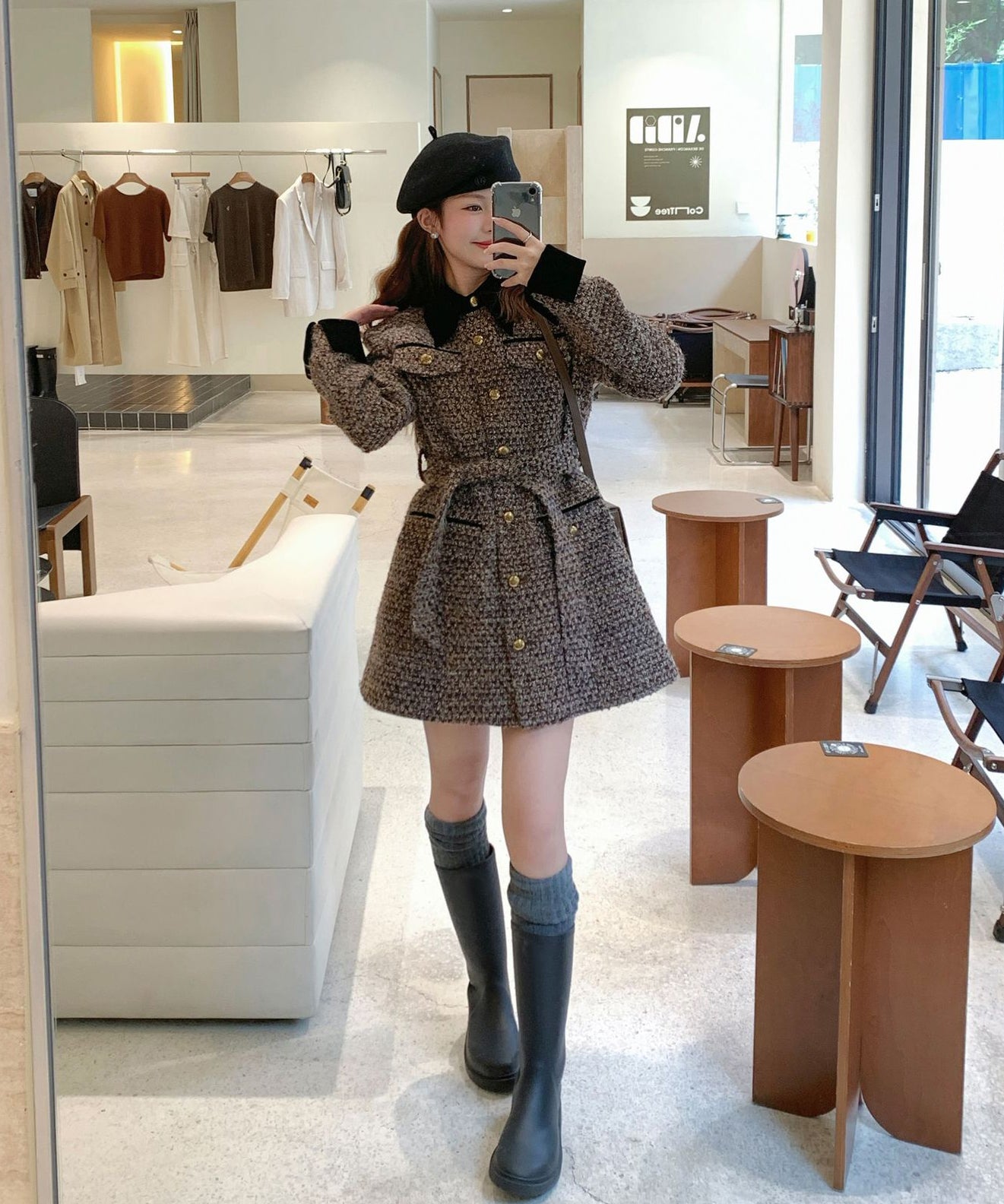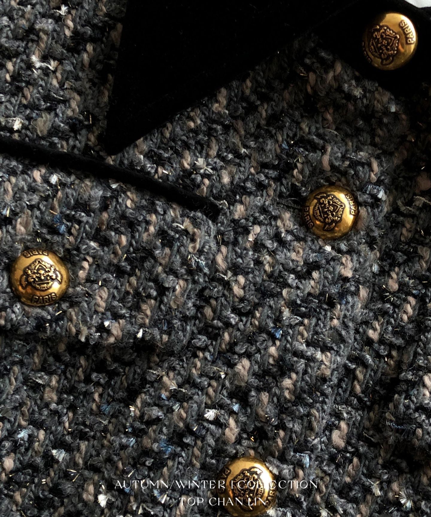 【2色】ミニドレスツイードセレブ風高級感秋冬エレガント着痩せ気質韓国っぽXH2-TCL25177L
