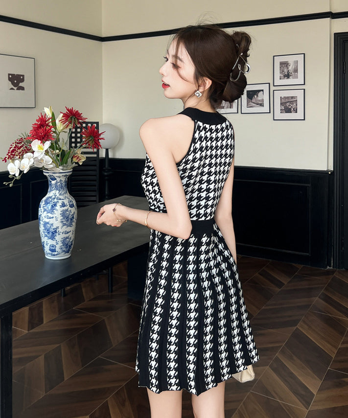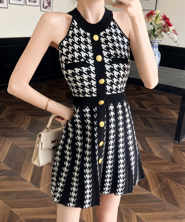 【2色】ミニドレス オードリー風 ホルターネック ニット エレガント Aライン ウェストシェイプ 痩せ見え デート パーティー JC2-MLS8378