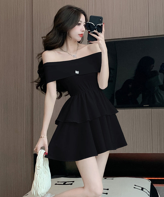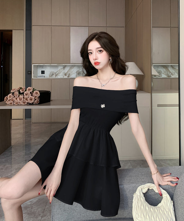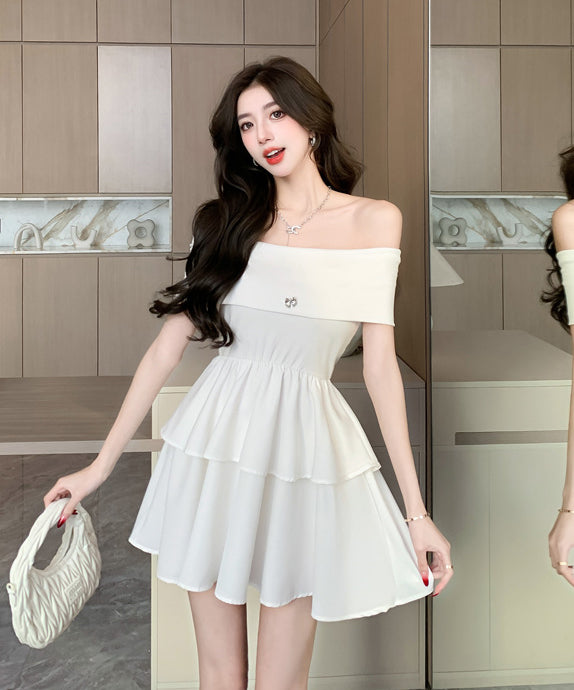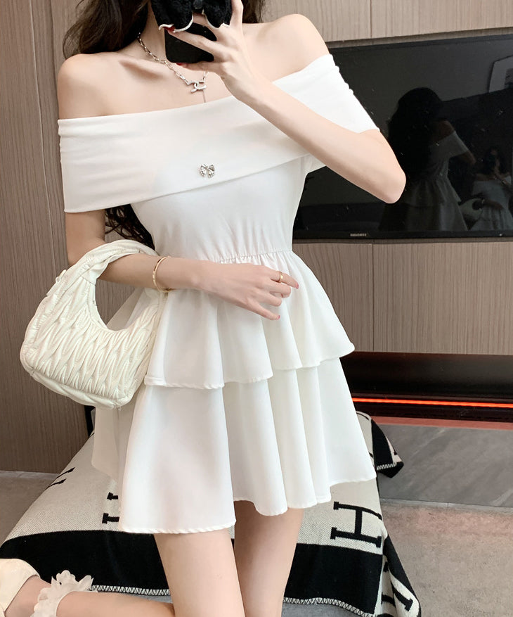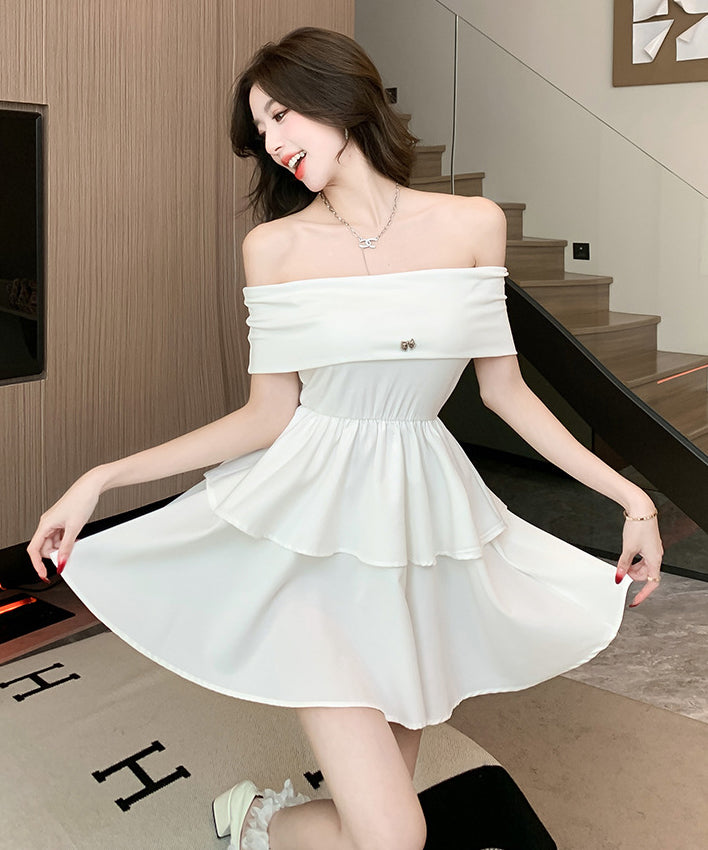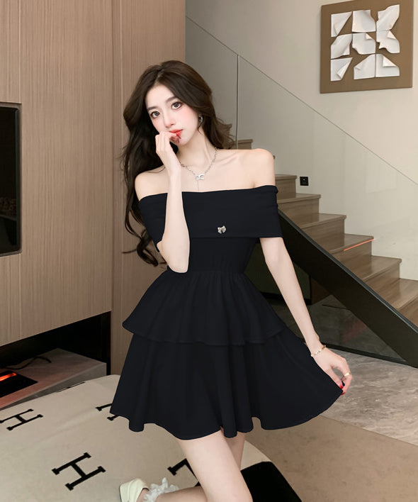 【2色】ミニドレス カワセクシー オフショルダー Aライン 気質 着痩せ 通勤 XH2-ZED886092GT513
