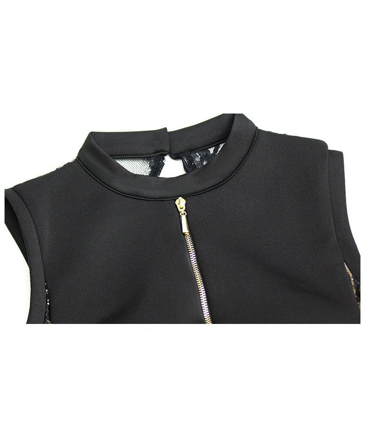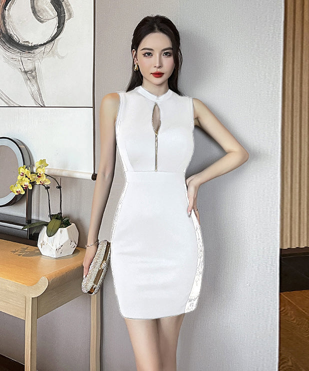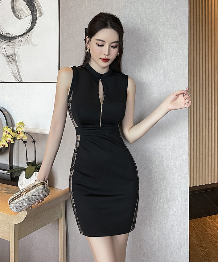 【2色】ミニドレス キャバキャバ レース ハイウエスト セクシー ジップ 谷間見せ XH2-YM8803