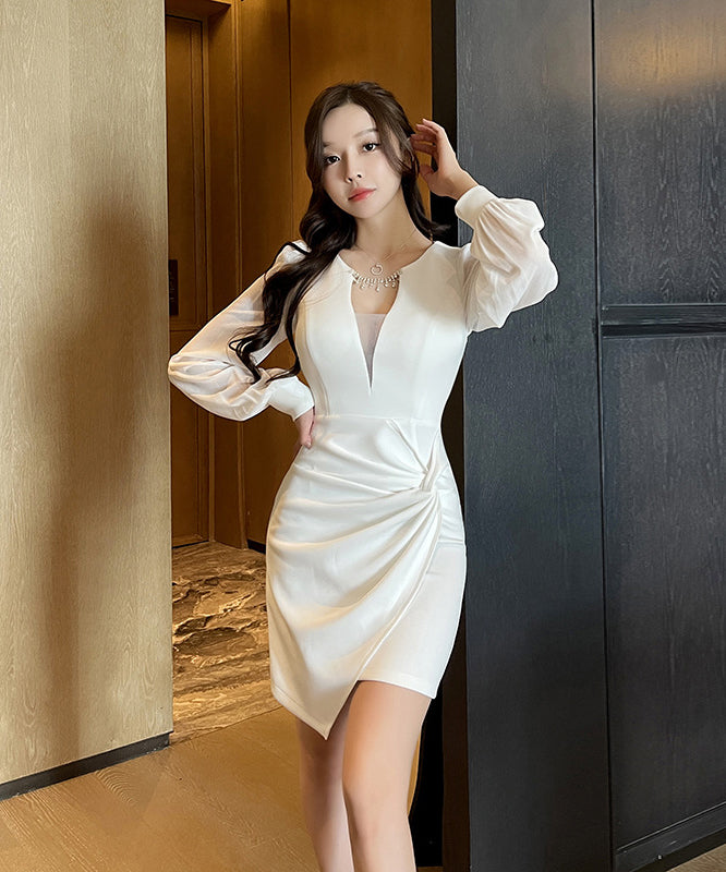 【2色】ミニドレス キャバドレス セクシー ダイヤモンド 谷間見せ 非対称 着痩せ XH2-YM8805