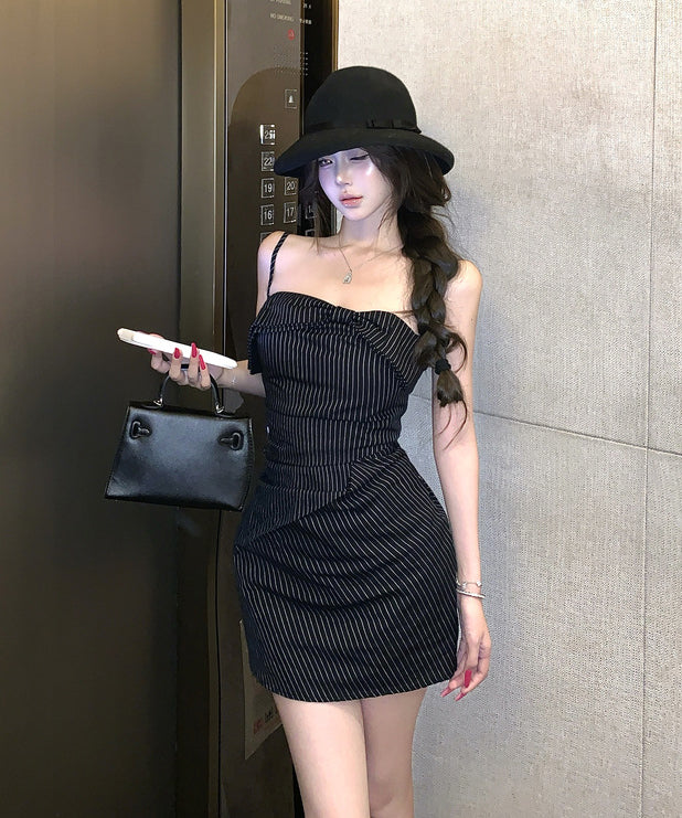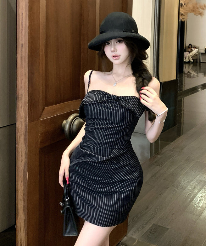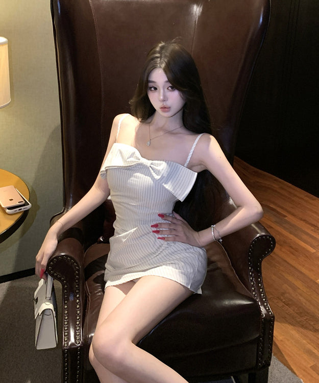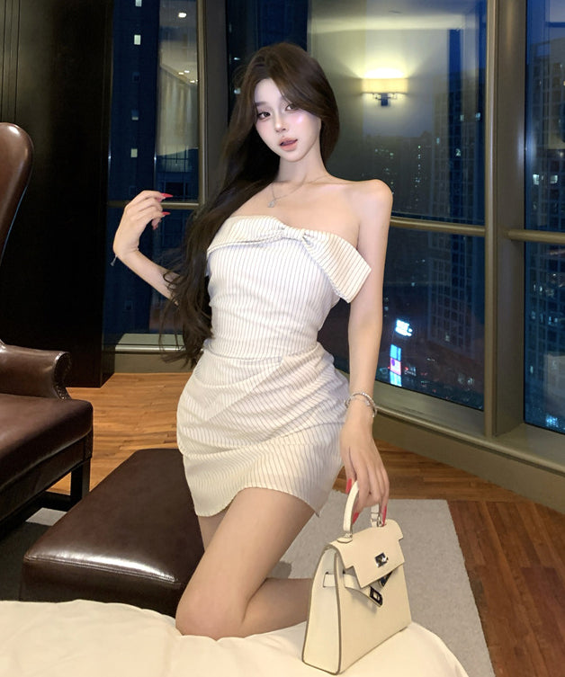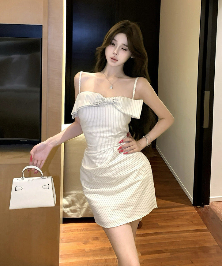 【2色】ミニドレス キャバドレス セクシー ボディコン コットンストライプ バストデザイン バタフライリボン 上品カジュアル デート 女子会 JC2-XKDD408A-2082-Sep1