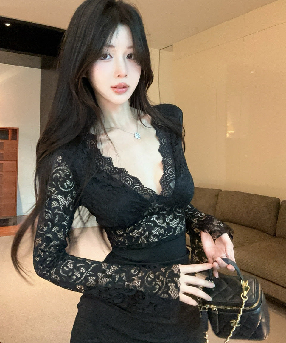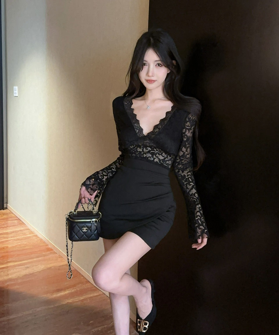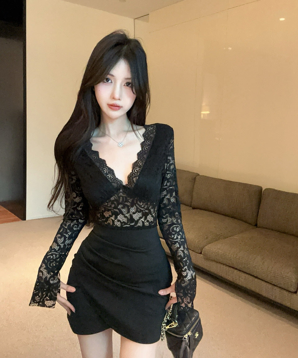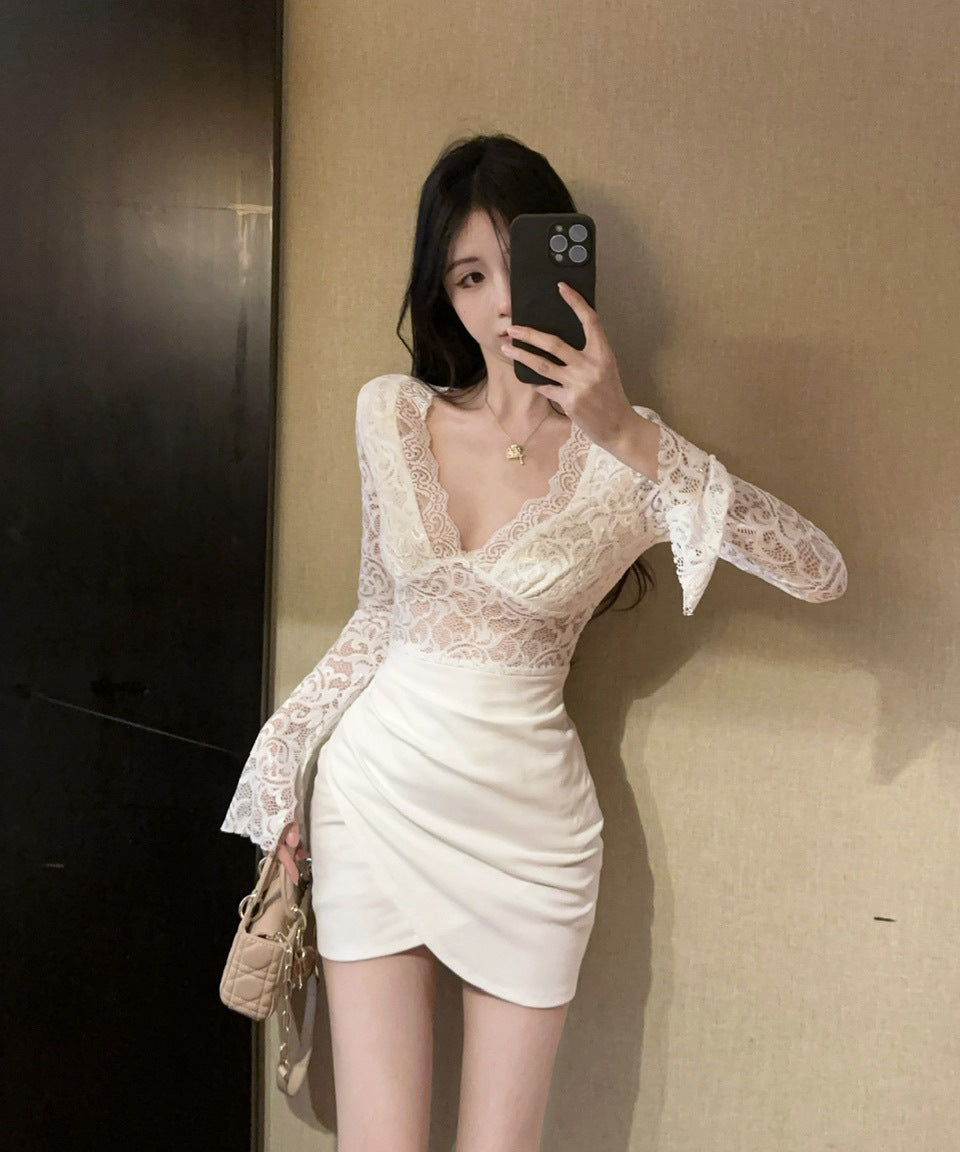 【2色】ミニドレス キャバドレス セクシー ロングスリーブ レース拼接け ナイトクラブ ボディコン 指名 JC2-DD5422