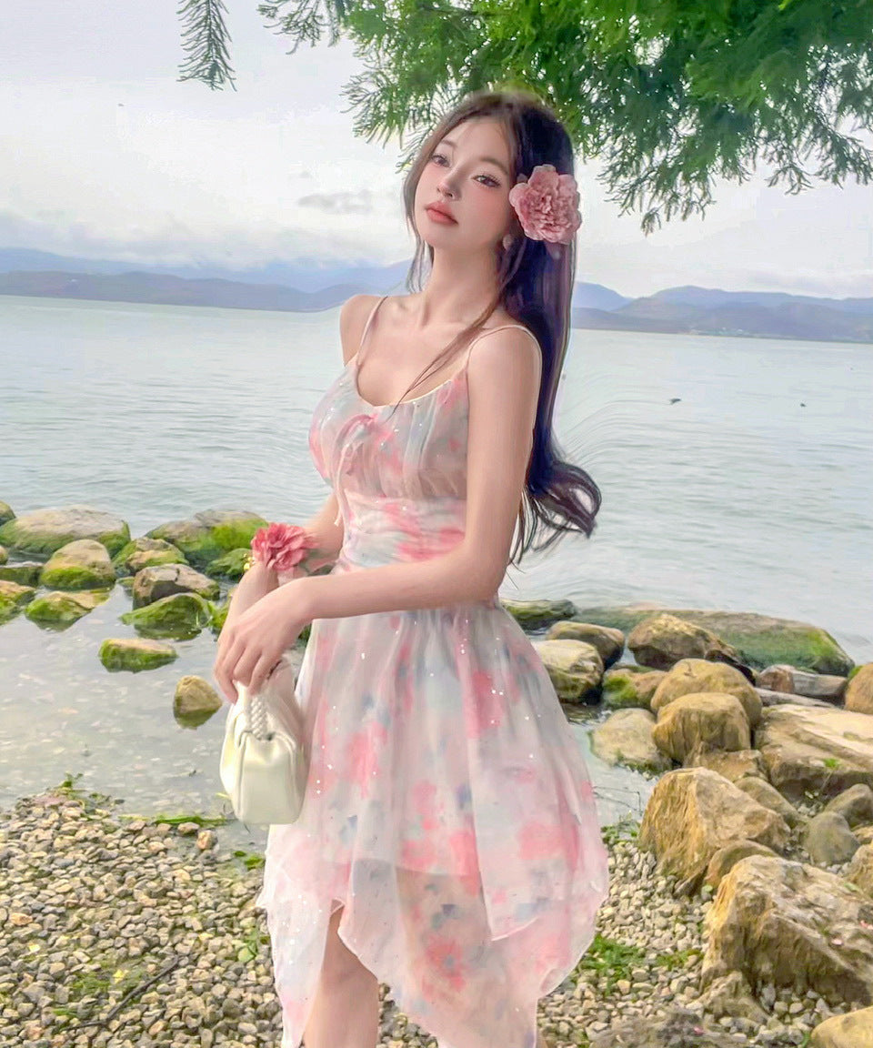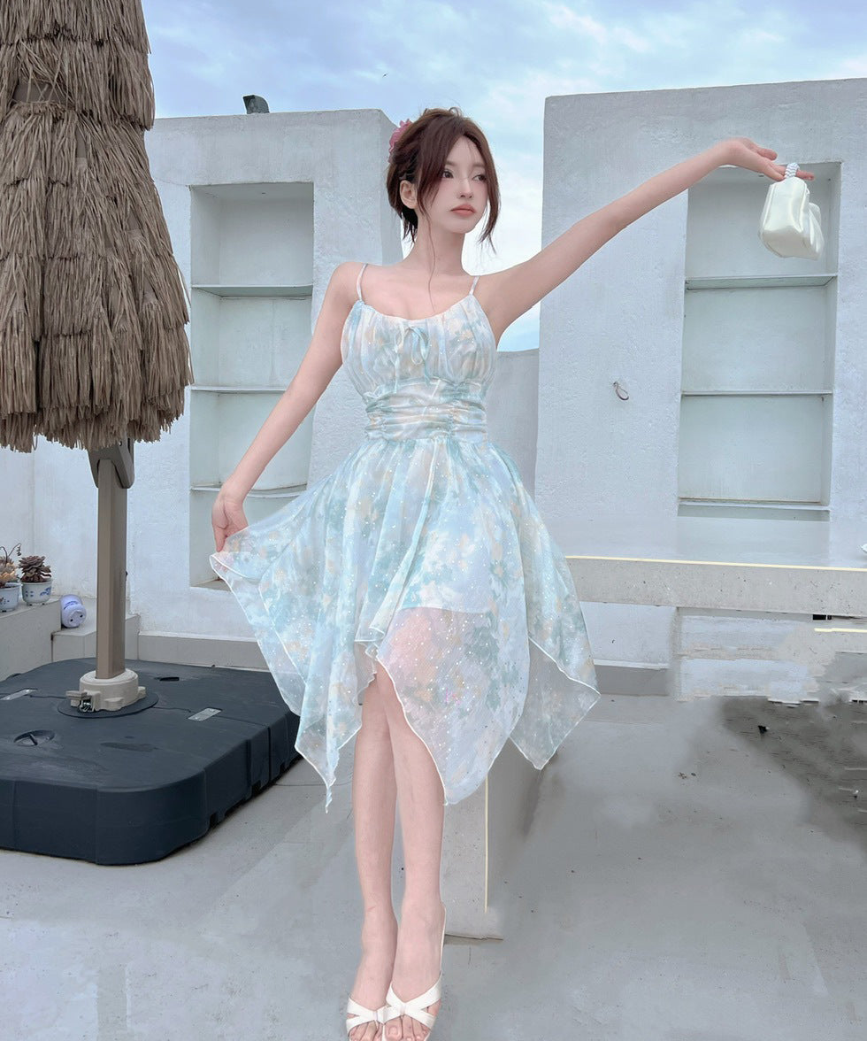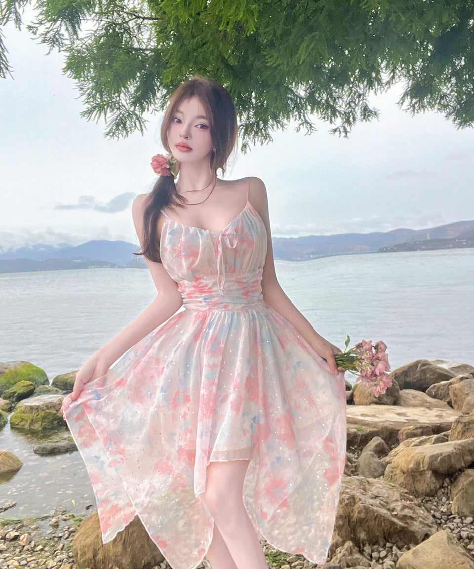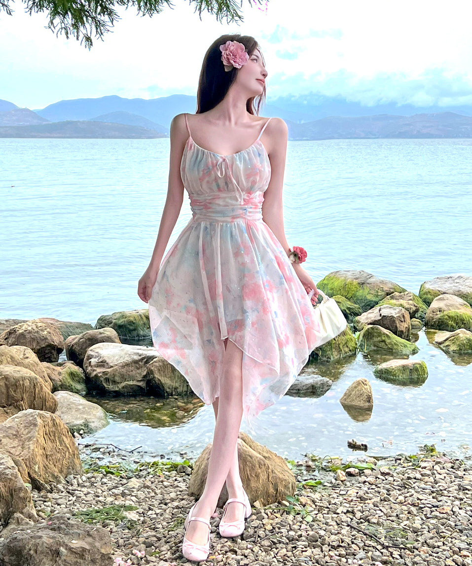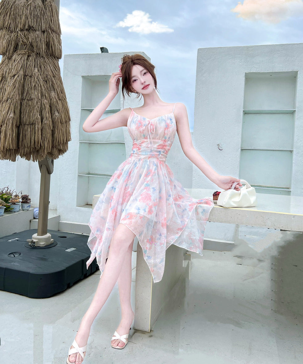 【2色】ミニドレス キャバドレス セクシー 花柄 チュール 不規則 おしゃれ YH2-DD6693