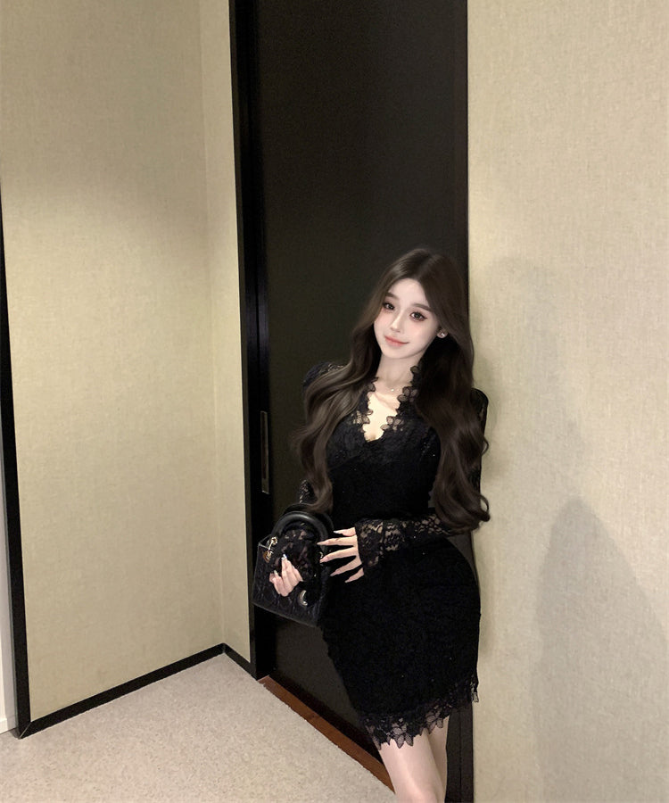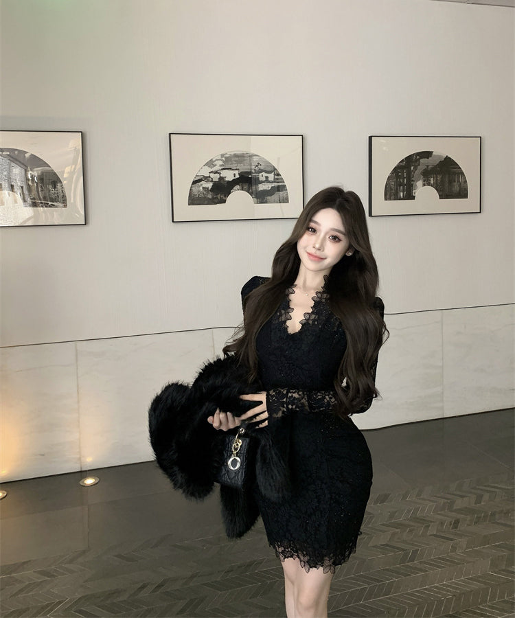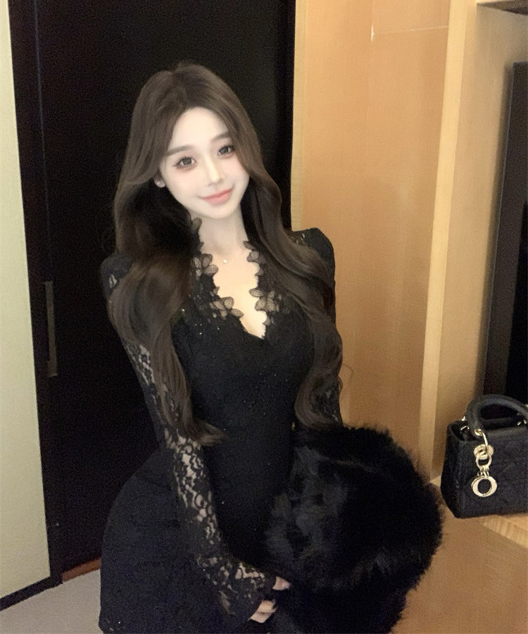 【2色】ミニドレス キャバドレス タイトドレス セクシー 大人フェミニン レースカットアウト Vネック ボディコン デート ナイトクラブ JC2-XKDD355-6601-Aug27
