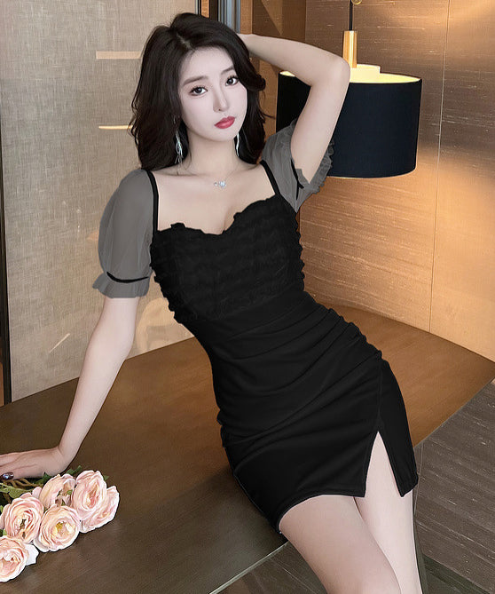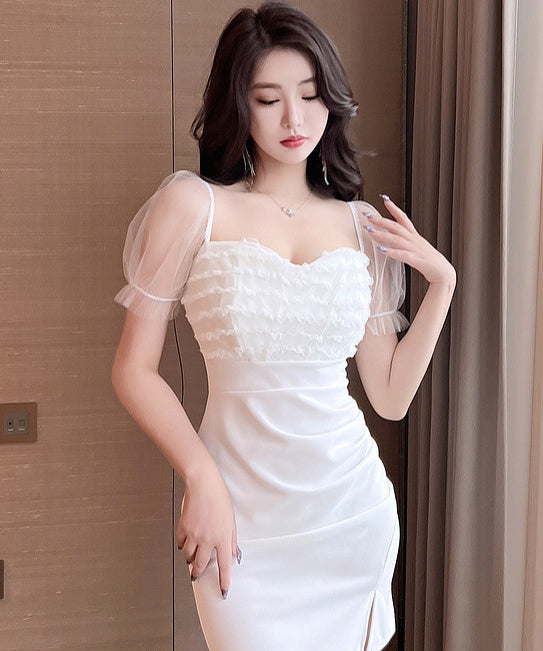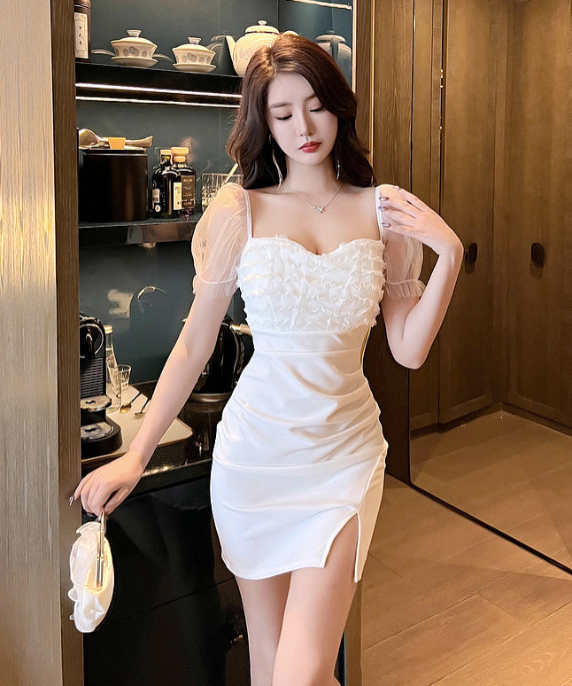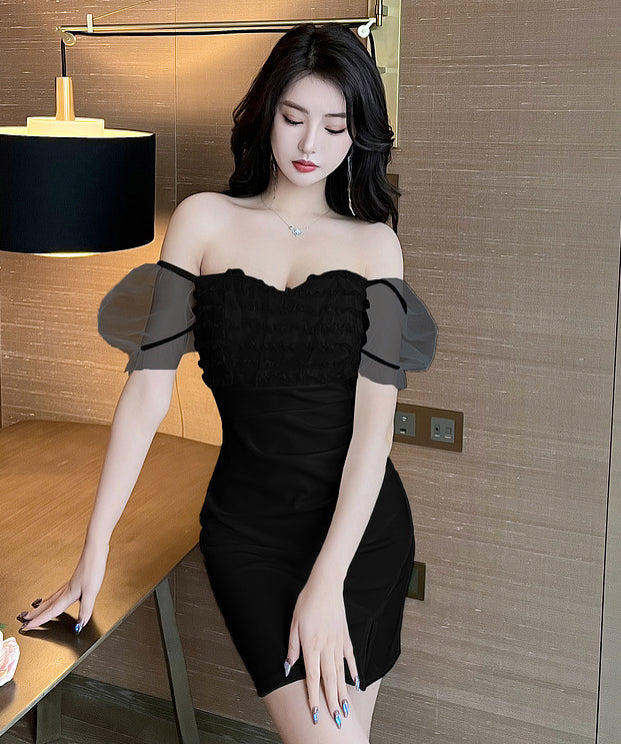 【2色】ミニドレス キャバドレス チュール セクシー 谷間露出 party YH2-DD4582