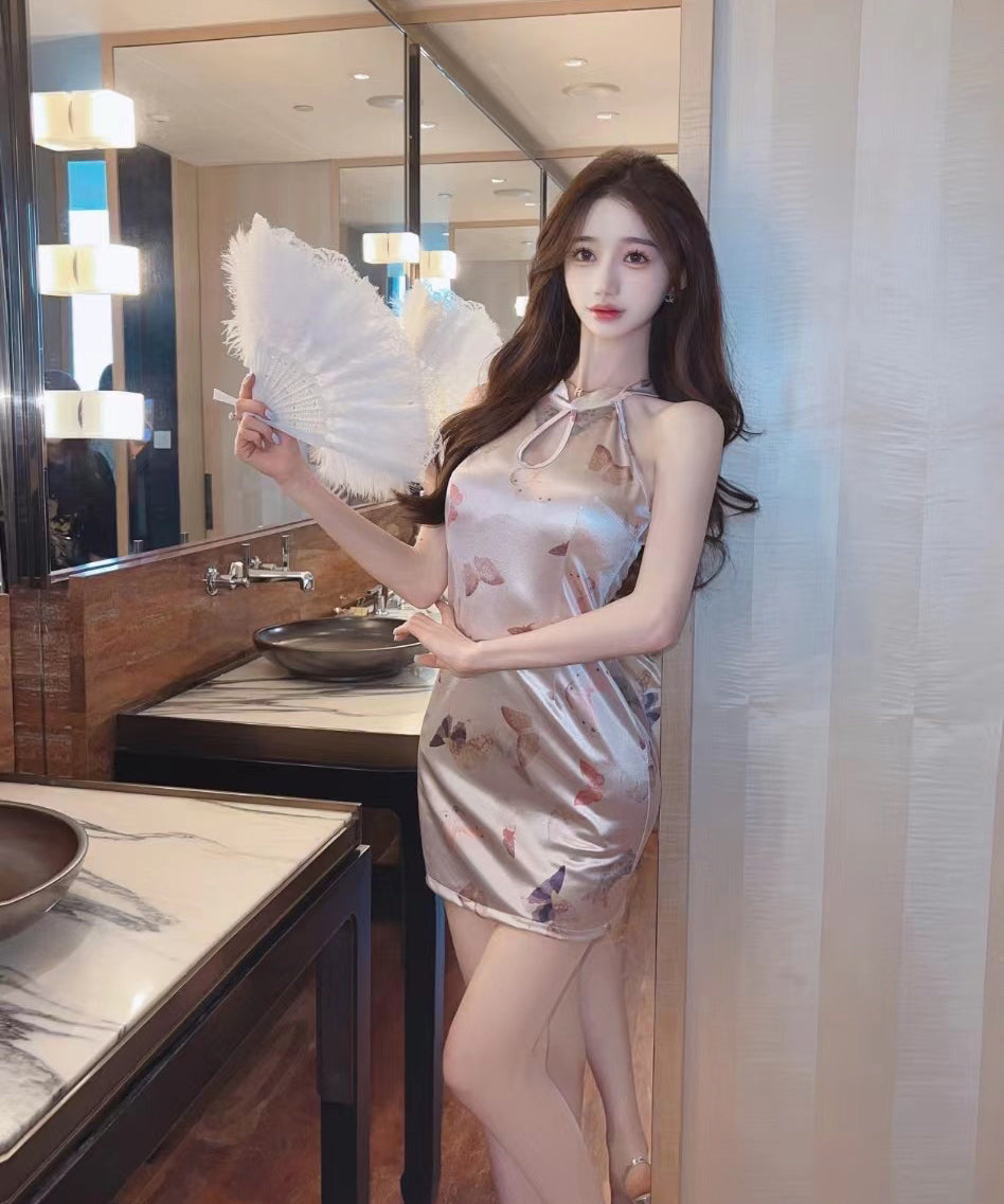 【2色】ミニドレス キャバドレス ベアトップ セクシー チャイナドレス 蝶柄 YH2-DD6659