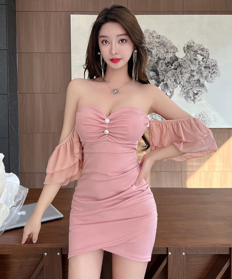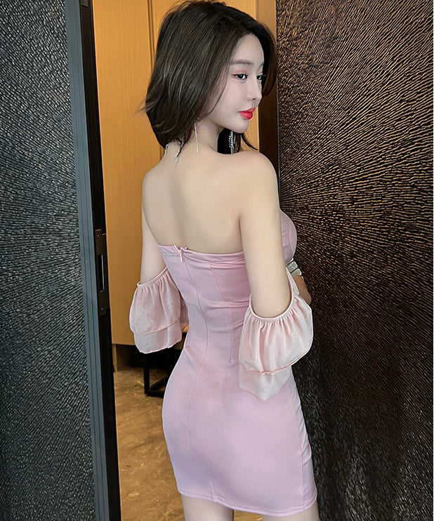 【2色】ミニドレス キャバドレス ベアトップ セクシー 谷間見せ 指名 気質 ナイトクラブ XH2-DD7537