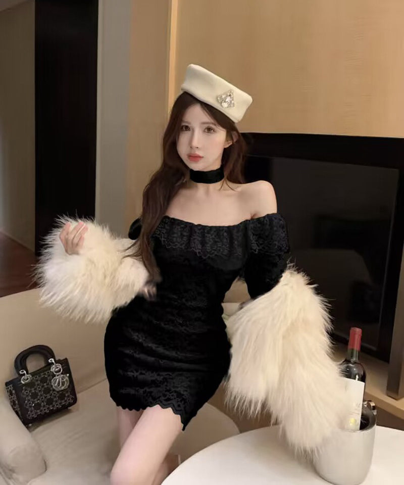 【2色】ミニドレス キャバドレス レースセクシー オフショルダー谷間見せ キャバクラ XH2-DD5824