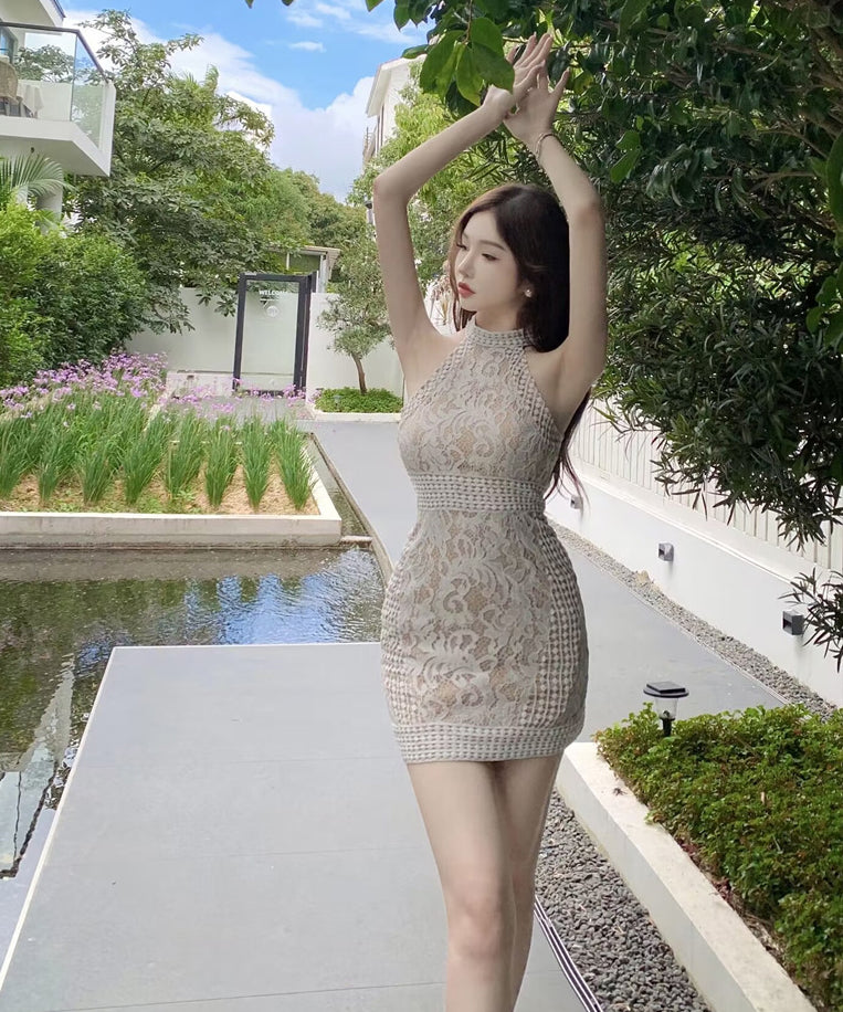 【2色】ミニドレス キャバドレス レース セクシー ホルターネック セクシー XH2-ZED888020DXH417