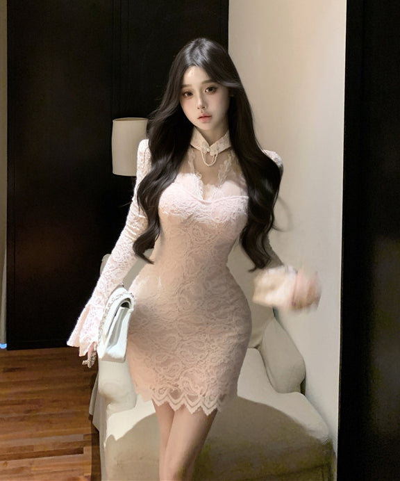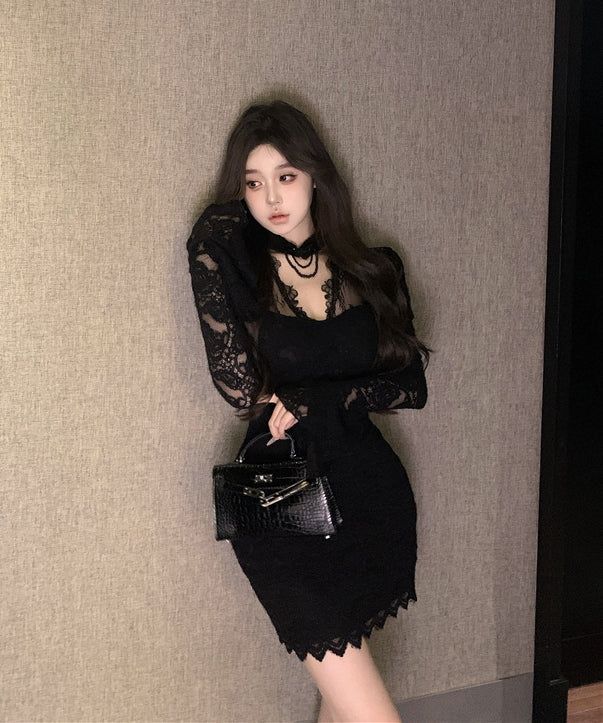 【2色】ミニドレス キャバドレス レース セクシー 高級感 肌見せ エレガント おしゃれ XH2-XKD-D529-6602-Nov13-d