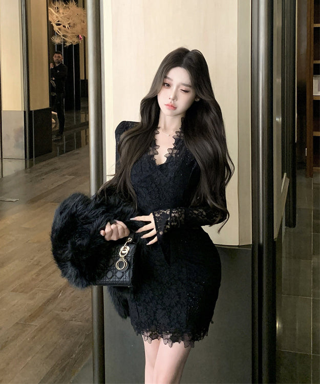 【2色】ミニドレス キャバドレス レース セクシー 高級感 谷間見せ エレガント おしゃれ XH2-XKD-D355-6601-Nov27