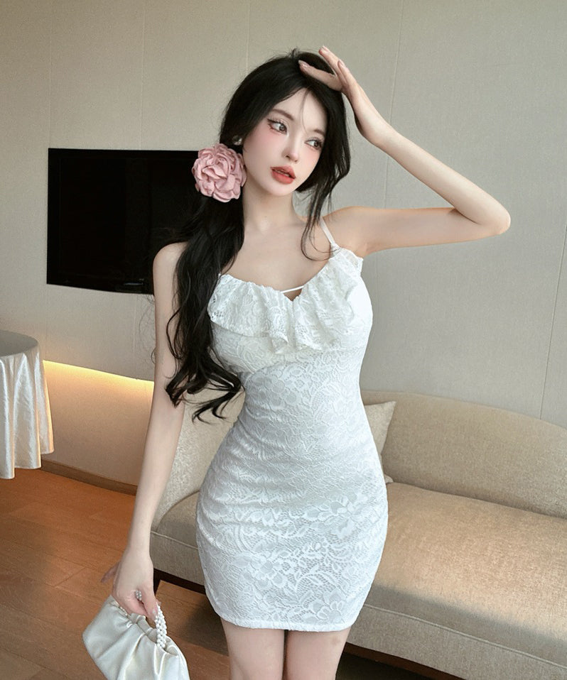 【2色】ミニドレス キャバドレス レース 花柄 Vネック 着痩せ セクシー YH2-DD6602
