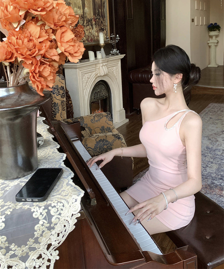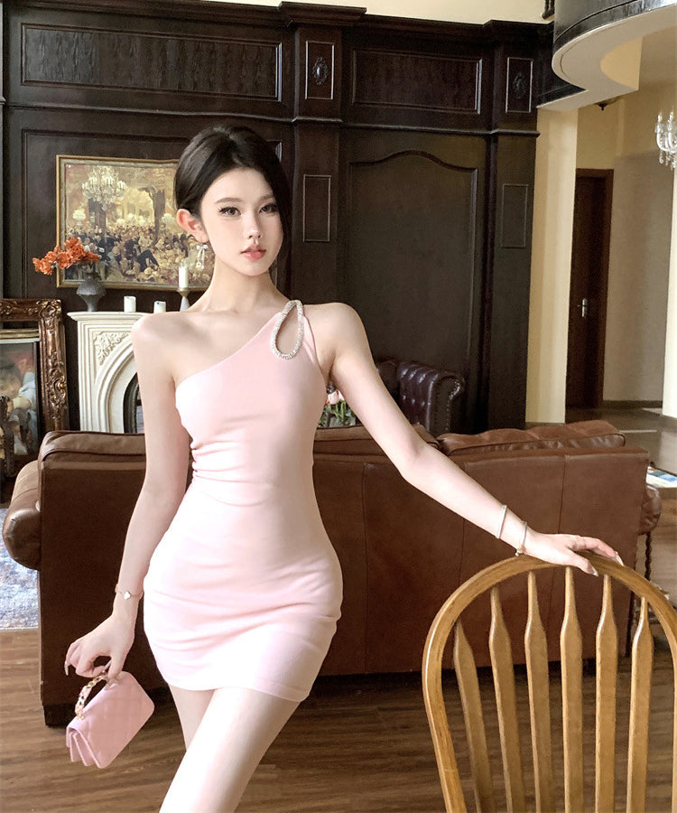 【2色】ミニドレス キャバドレス ワンーショルダー 非対称 セクシー パーティー 指名 XH2-CD7-437-22590570