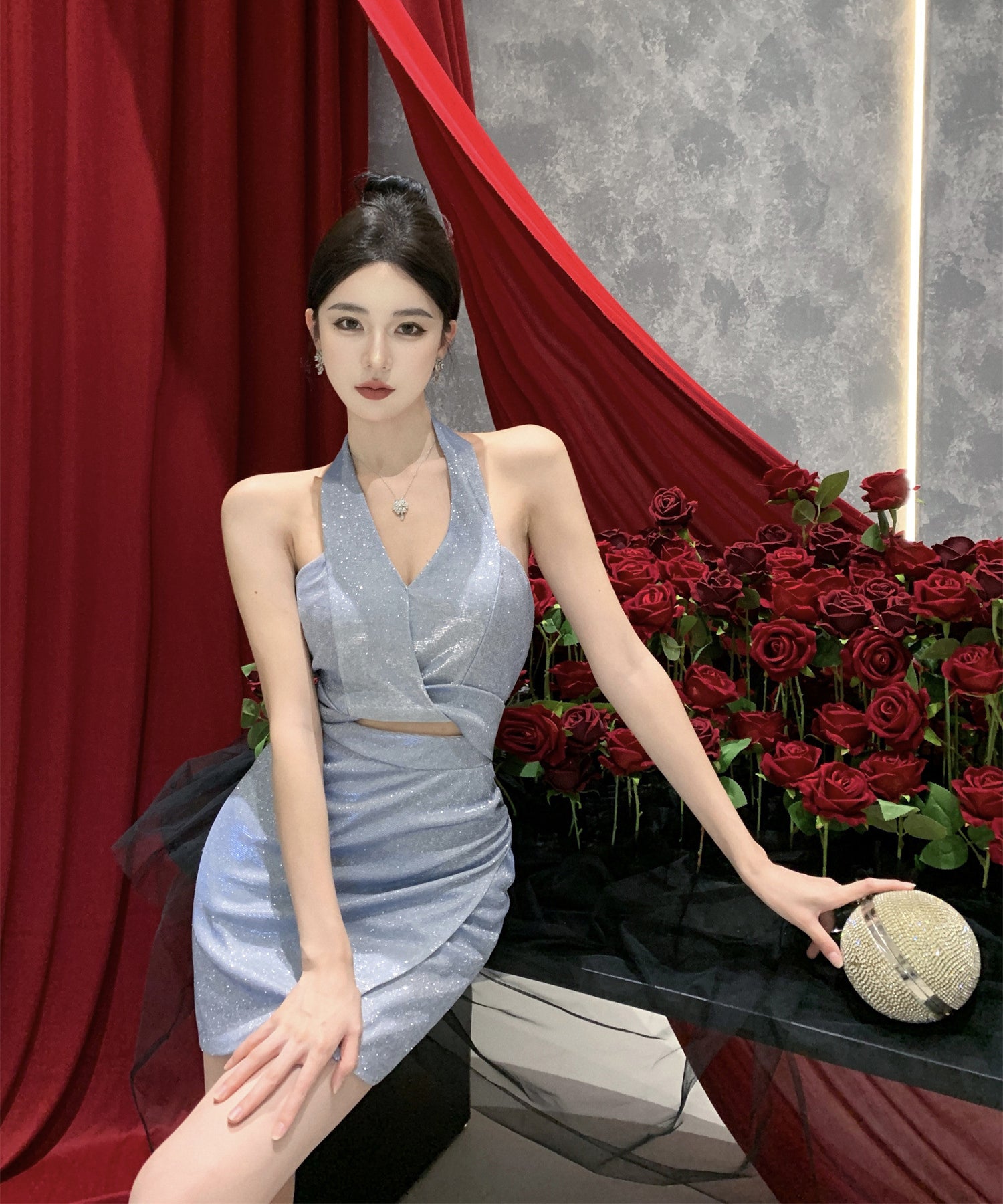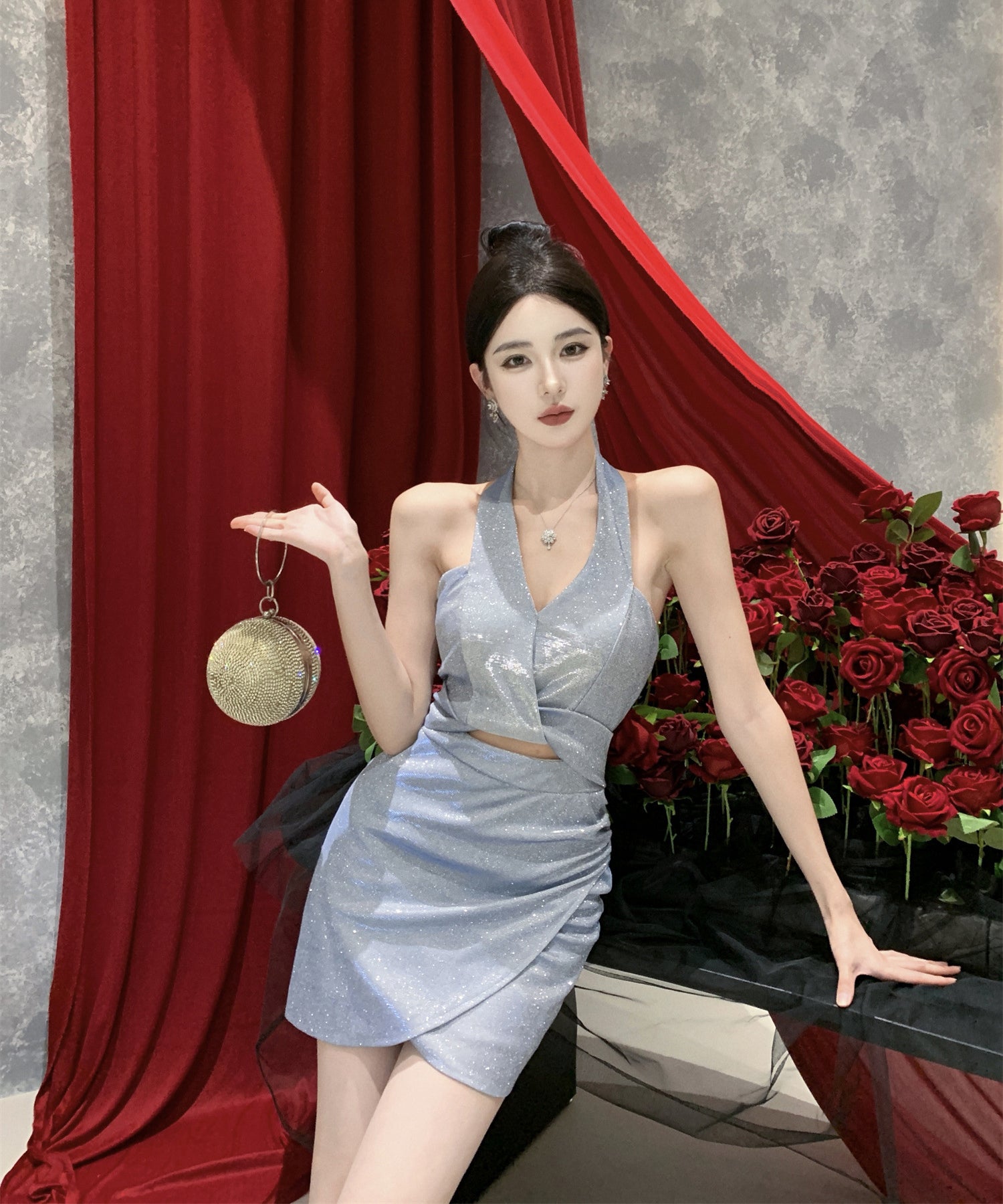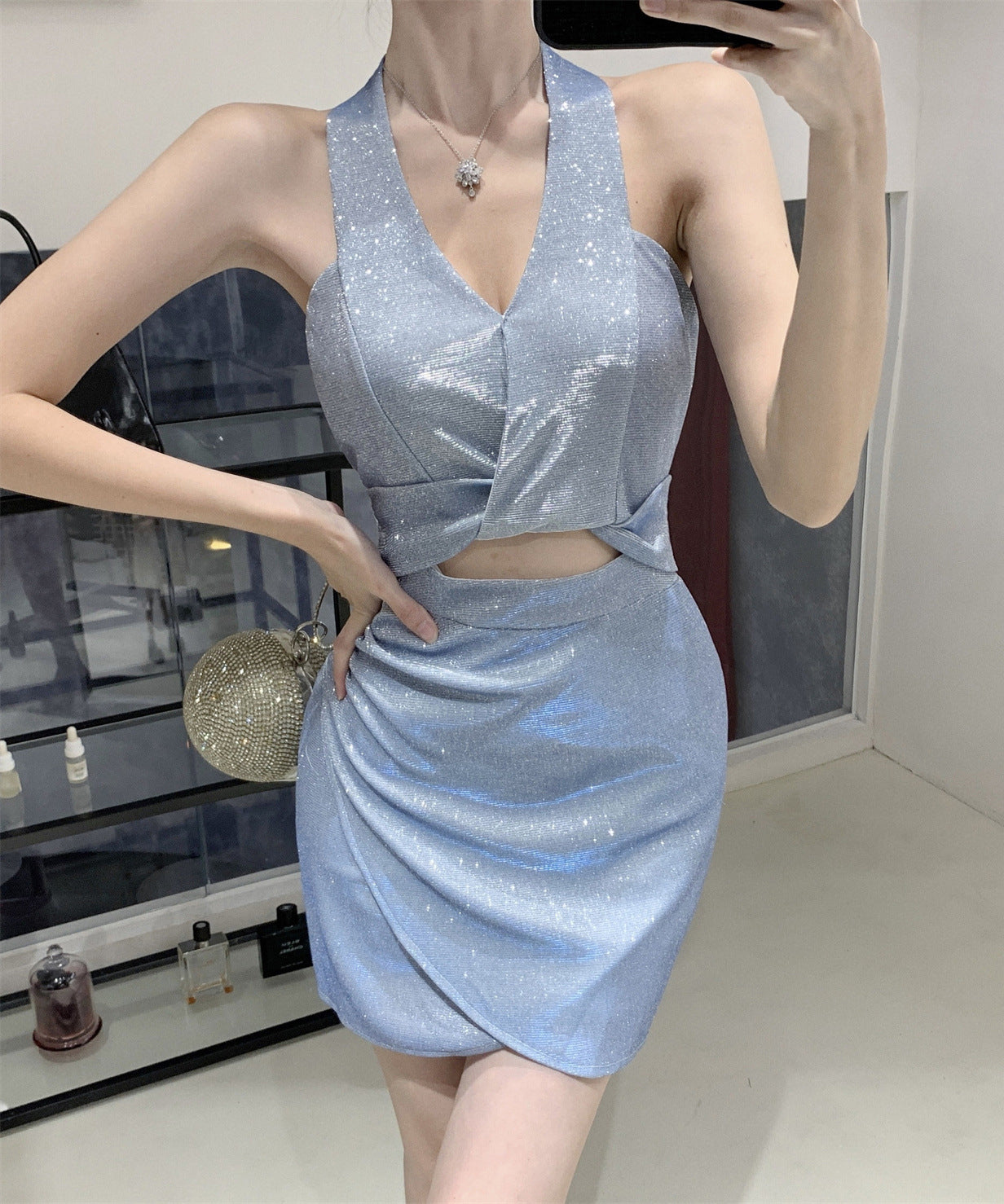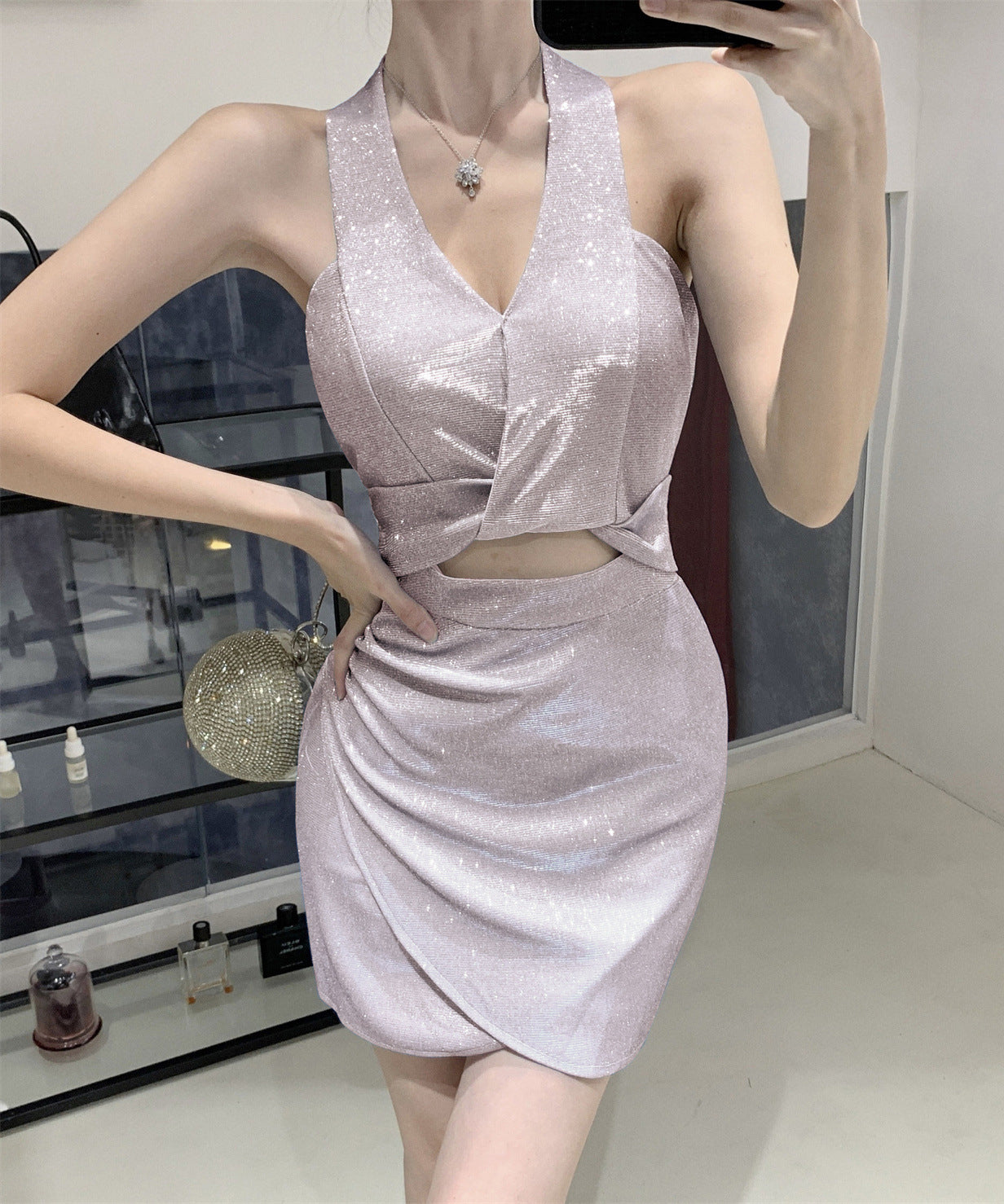 【2色】ミニドレス キャバドレス 谷間魅せ セクシー Vネック キラキラ パーティー XH2-DD4774