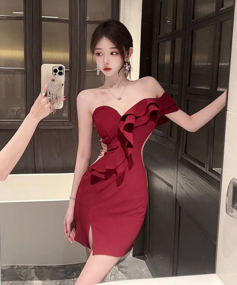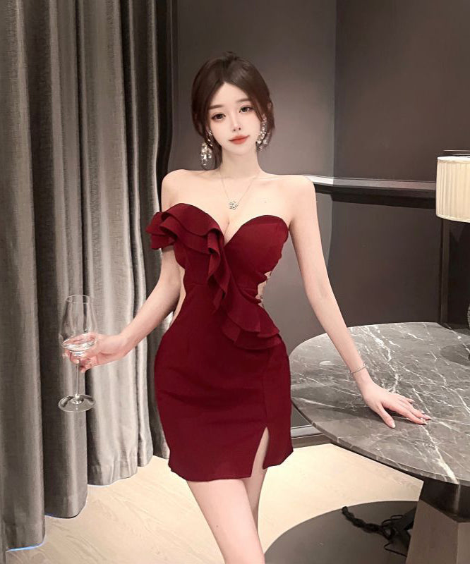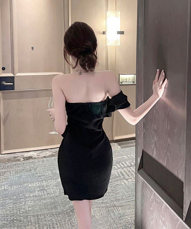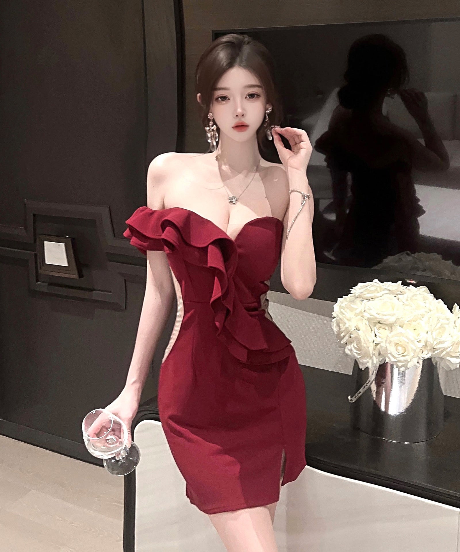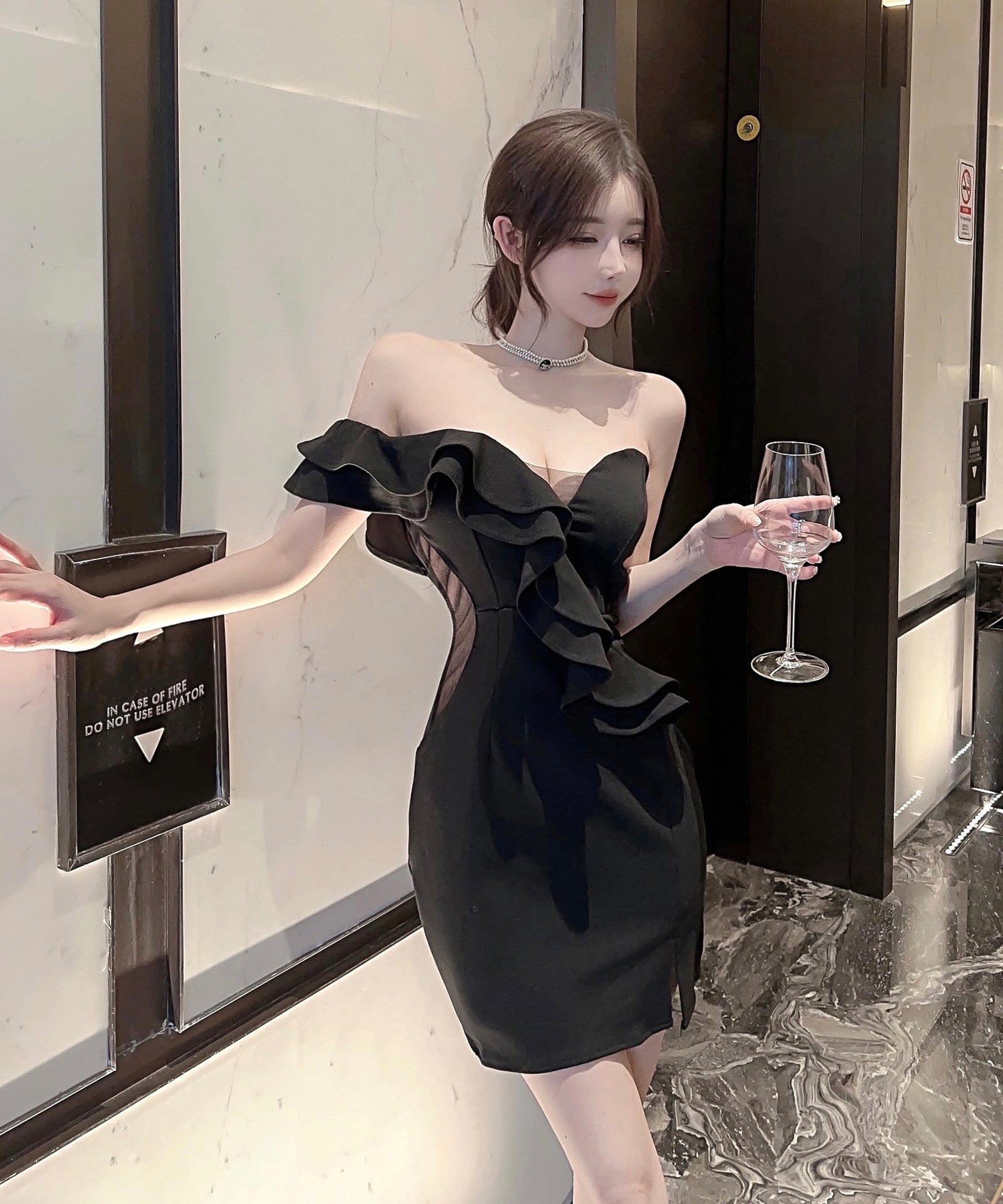 【2色】ミニドレス キャバドレス 谷間魅せ 指名 非対称 ベアトップ XH2-DD5656
