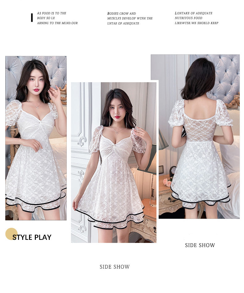 【2色】ミニドレス キャバドレス Aライン レース 谷間見せ 指名 気質 セクシー 大人可愛い XH2-JX5058