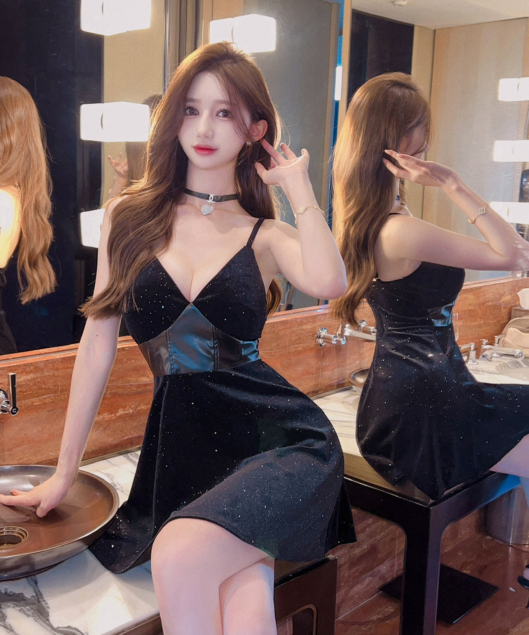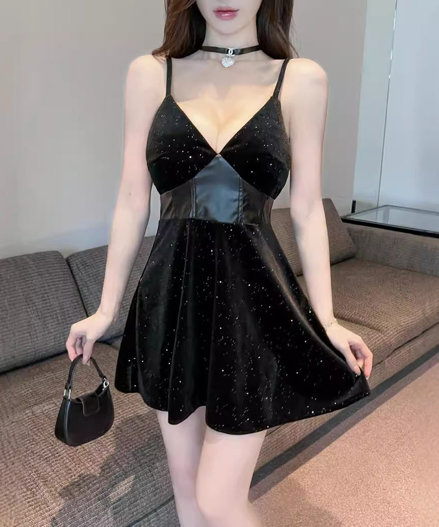 【2色】ミニドレス キャバドレス Aライン 谷間見せ キラキラ セクシー 指名 キラキラ XH2-DD7341