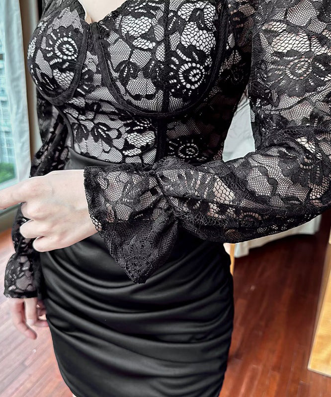【2色】ミニドレス タイトドレス キャバドレス セクシー レース 袖付き エレガント 小顔効果 XH2-ZED883122BH453