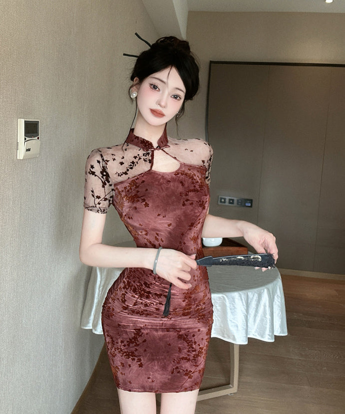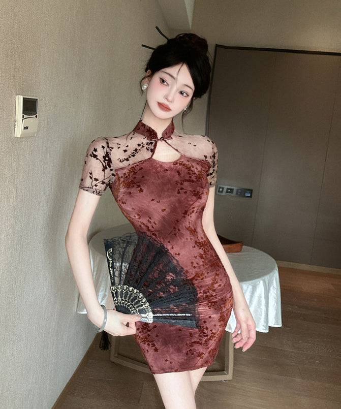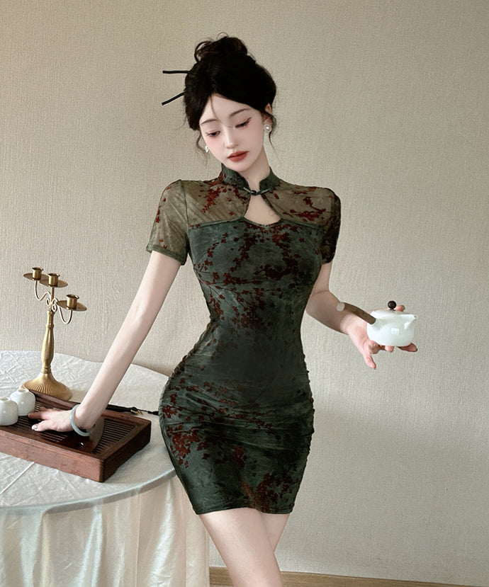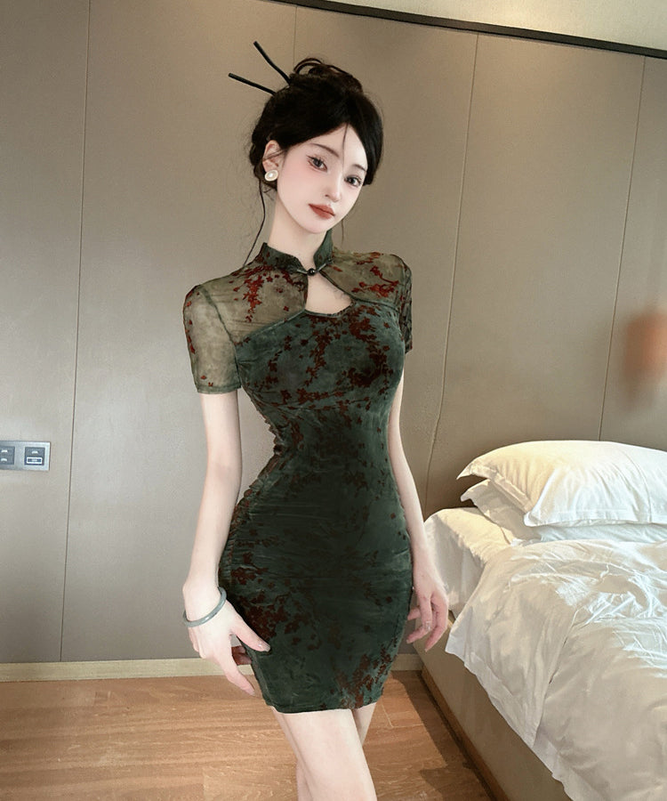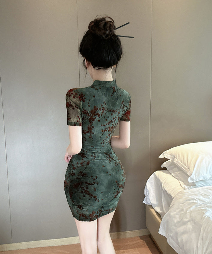 【2色】ミニドレス チャイナドレス セクシー キャバドレス 花柄 着痩せ YH2-DD6587