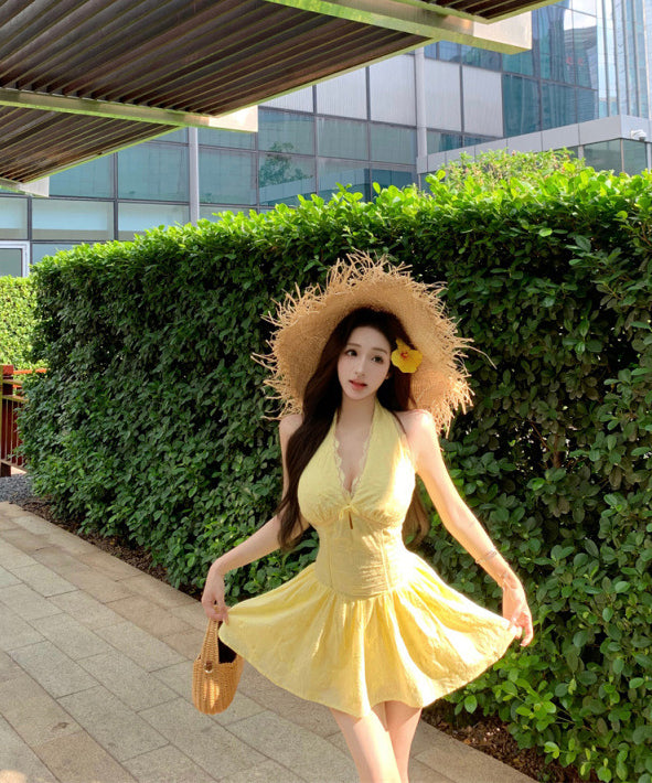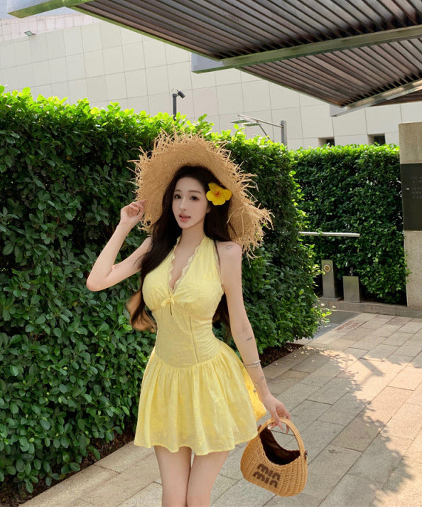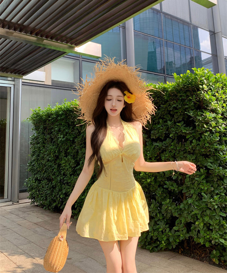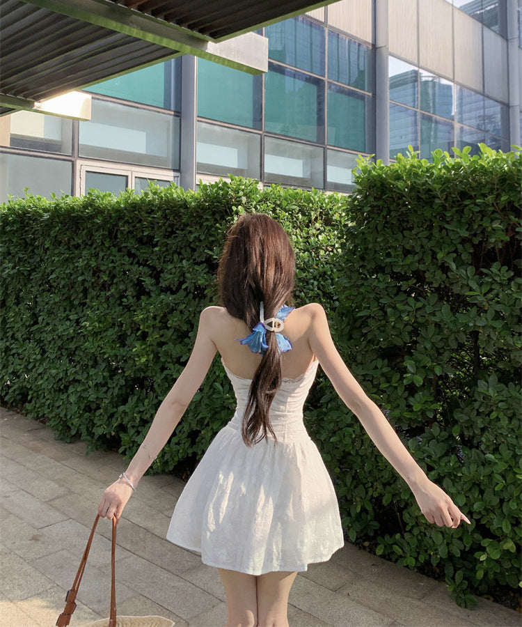 【2色】ミニドレスAラインホルターネックバックレスドレス着痩せ気質女子力パーティー WQ2-XKD-D355-6809-Mar16