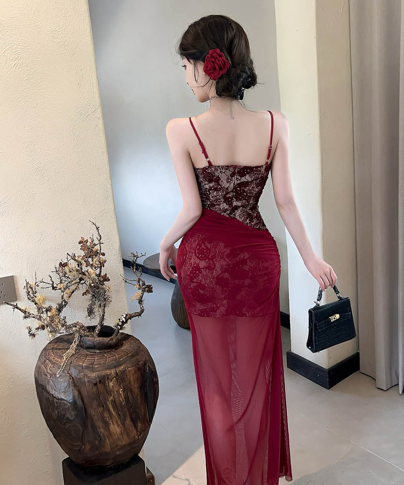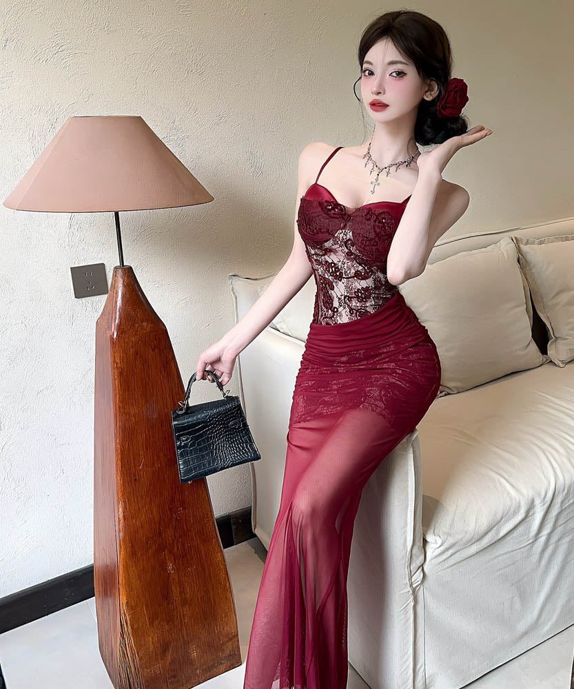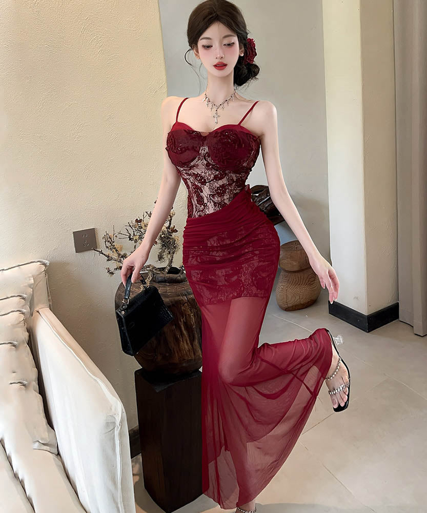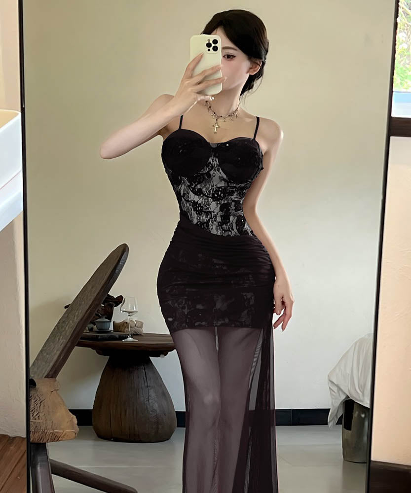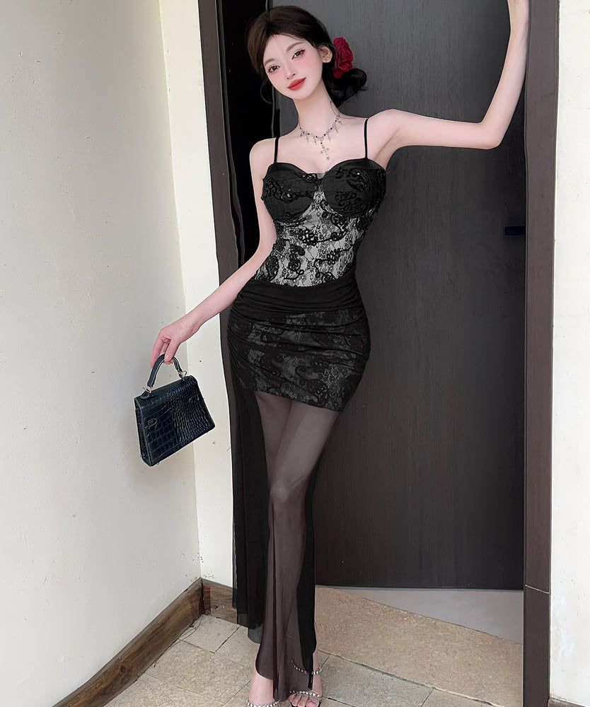 【2色】ロングドレスキャミワンピセクシーレースチュールキャバドレスキャバクラ着痩せパーティー指名 WQ2-DD4520