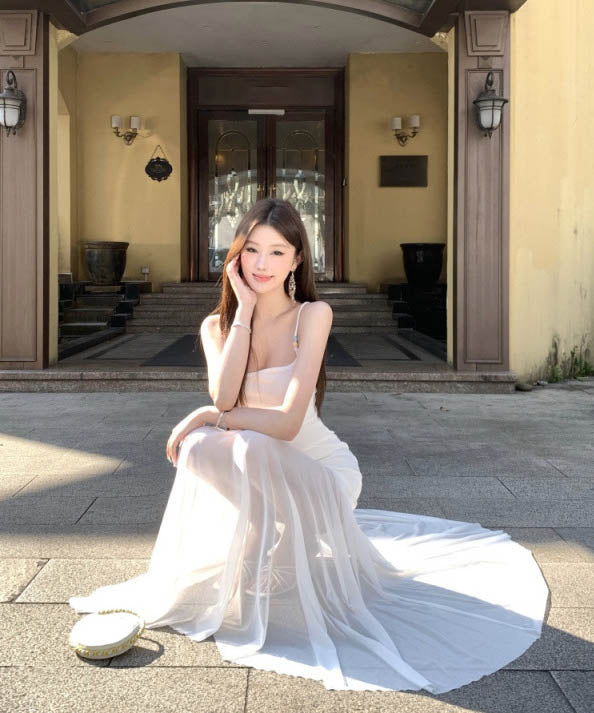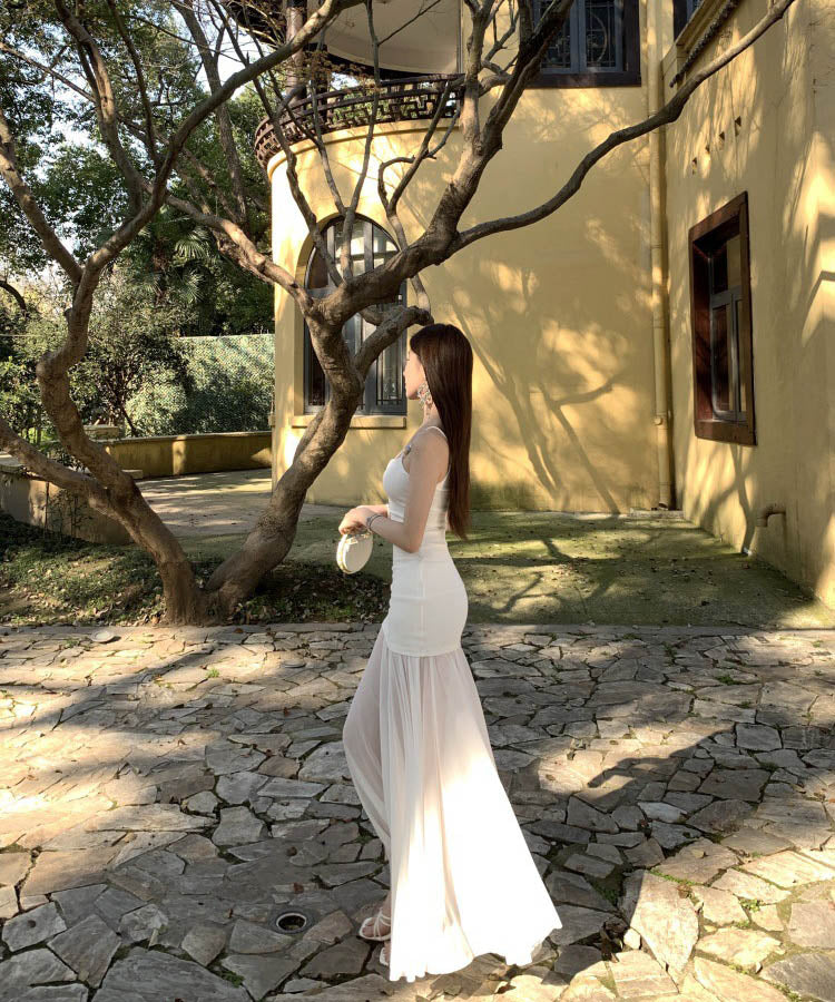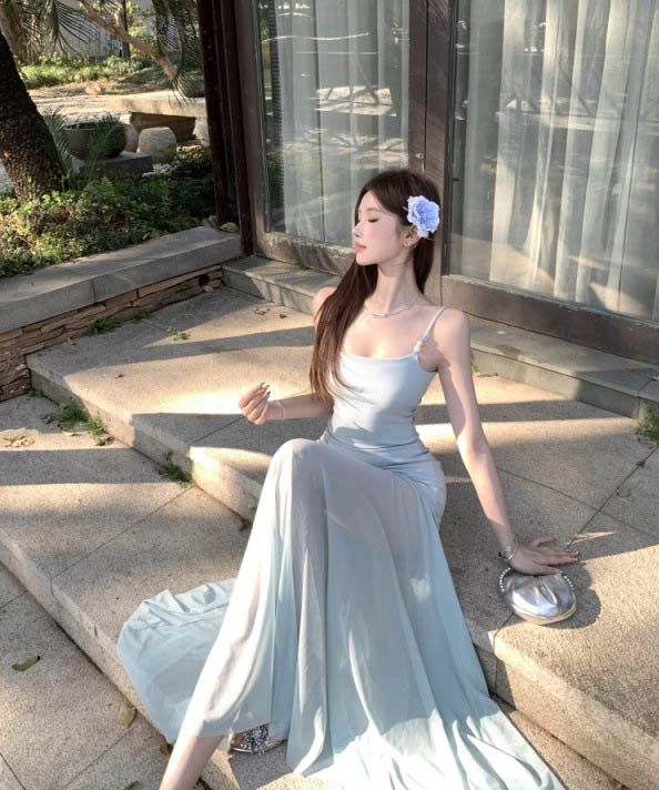 【2色】ロングドレスキャミワンピチュール透明感コーデ万能Jennie styleマーメイドドレス WQ2-ZED882521DXH437A