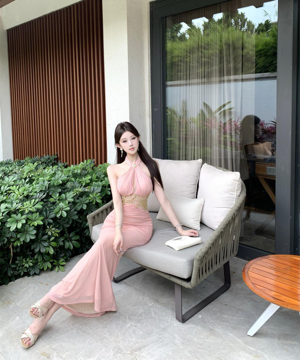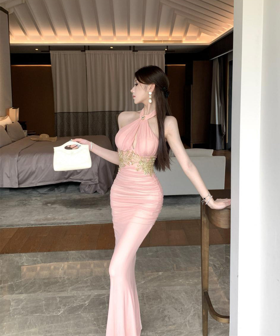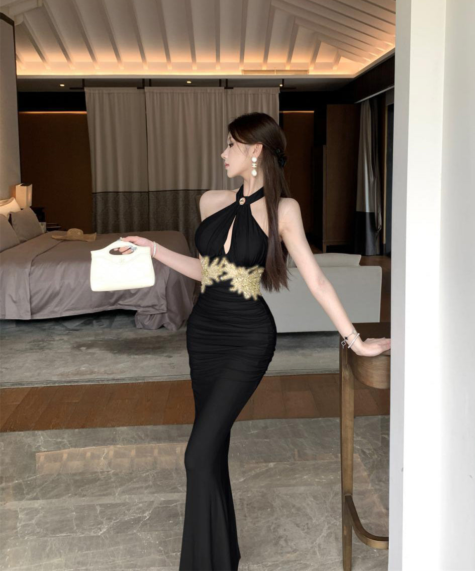 【2色】ロングドレスホルターネックタイトドレス刺繍エレガントマーメイドドレスパーティー WQ2-ZED885607DXH238B