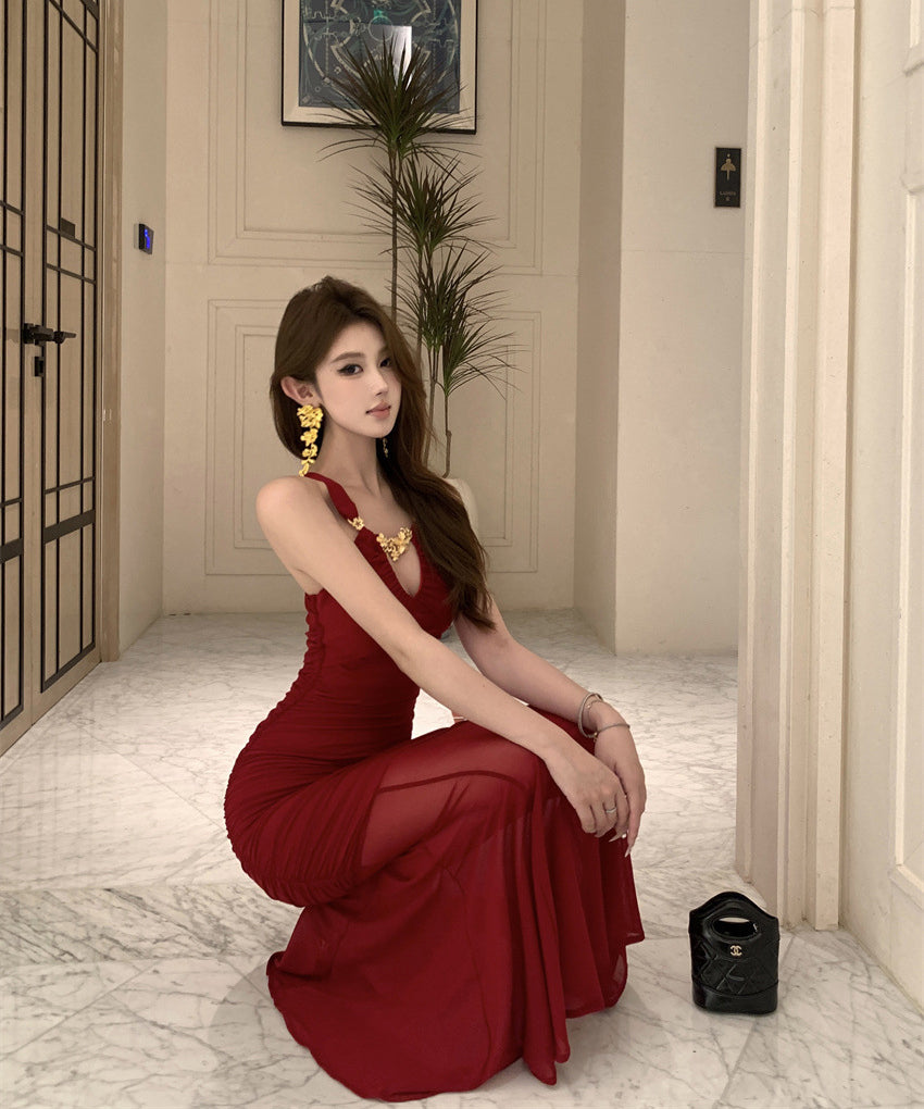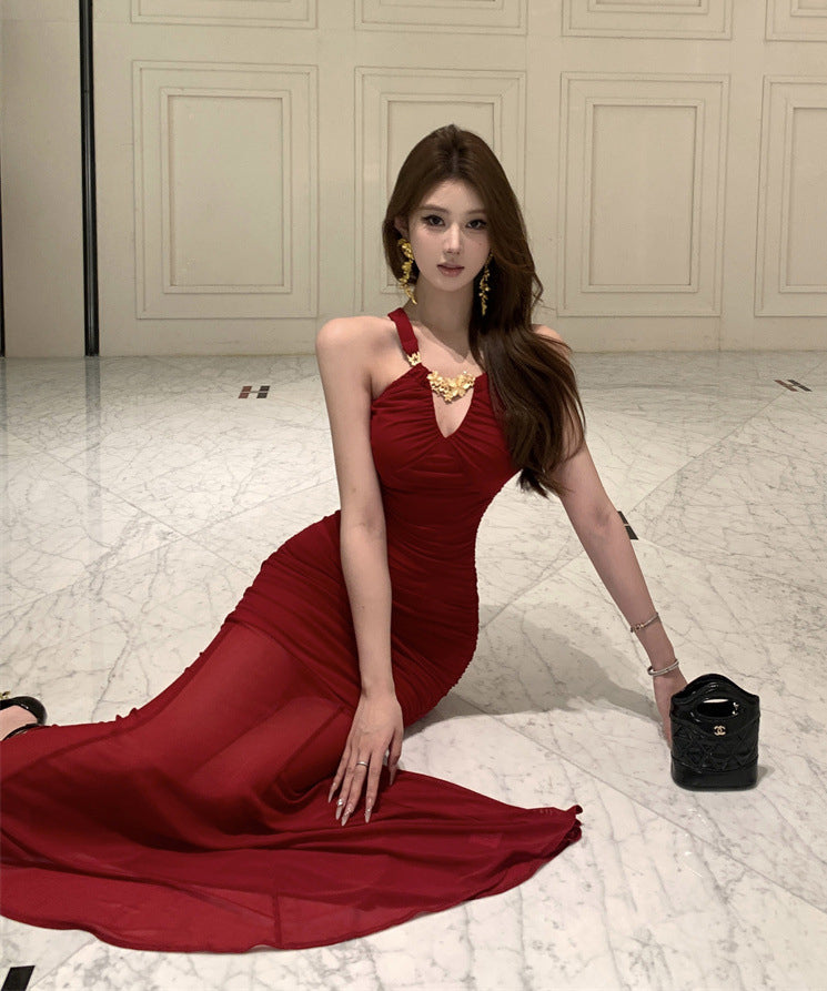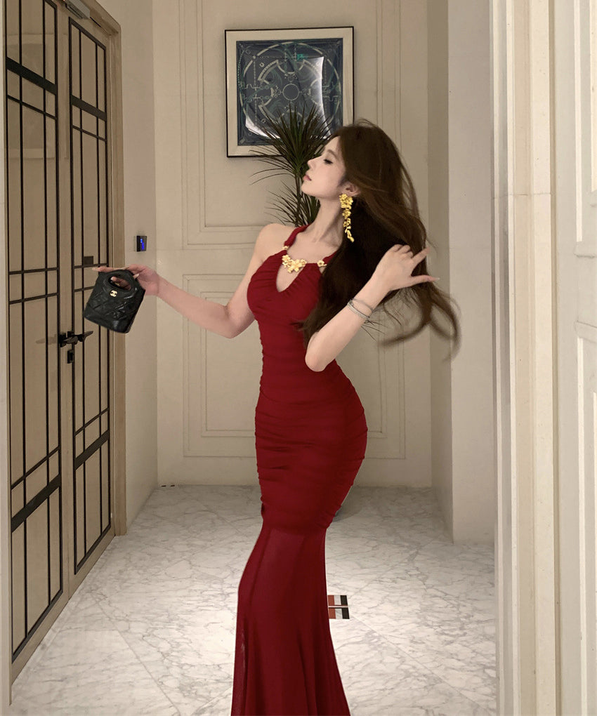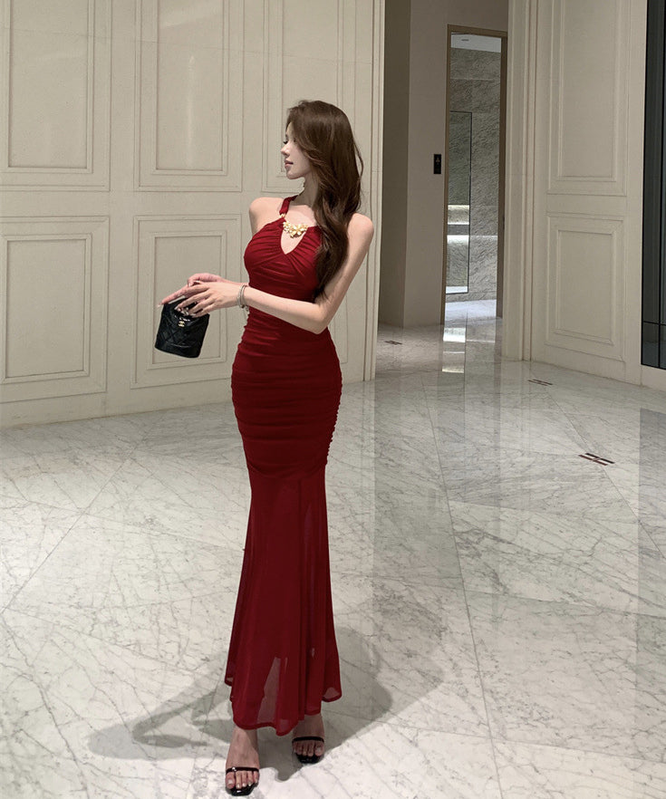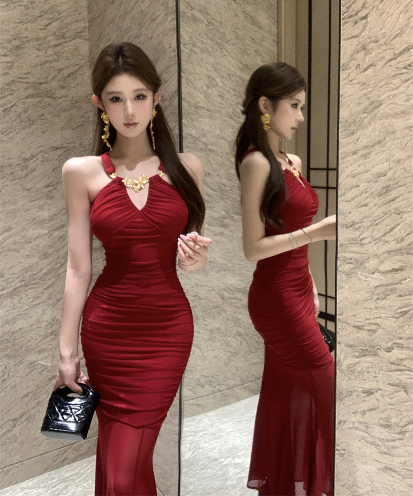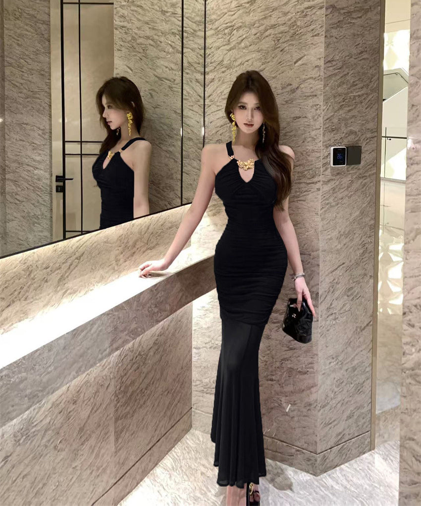 【2色】ロングドレス キャバドレス マーメイド 谷間見せ ホルターネック セクシー エレガント 宴会 パーティー XH2-ZED885567DXH238B