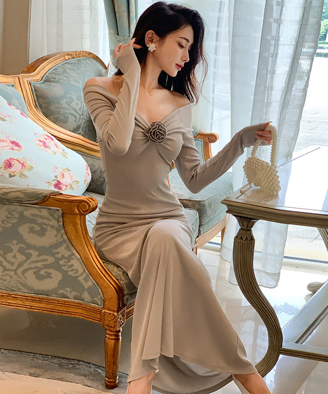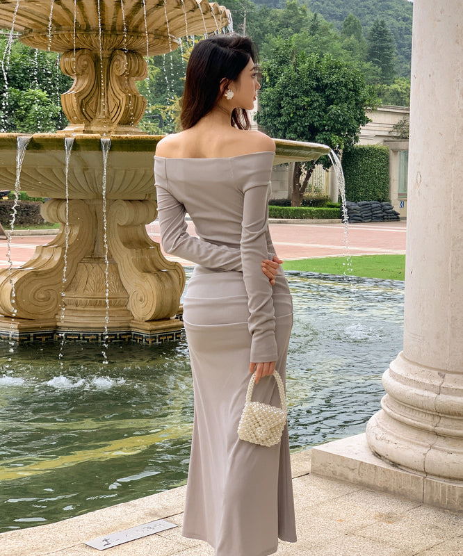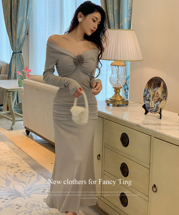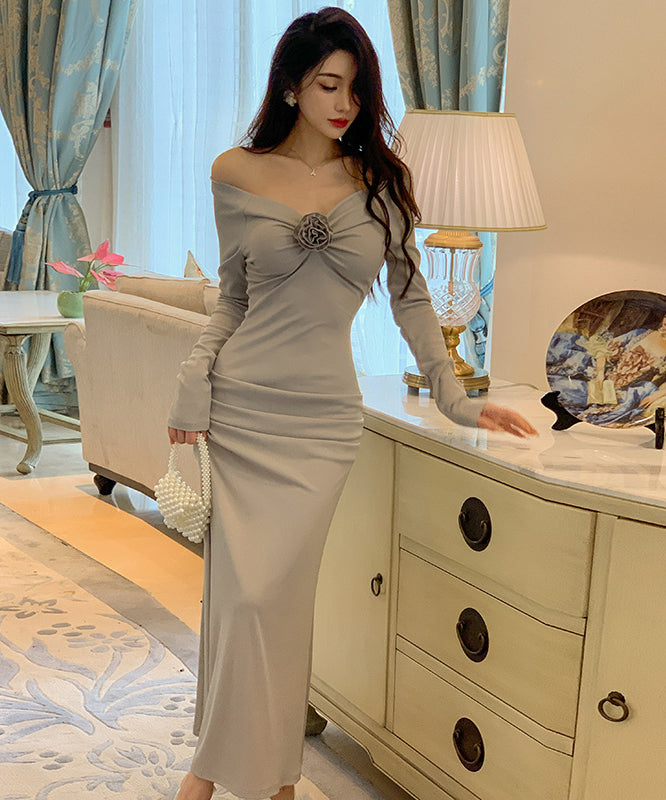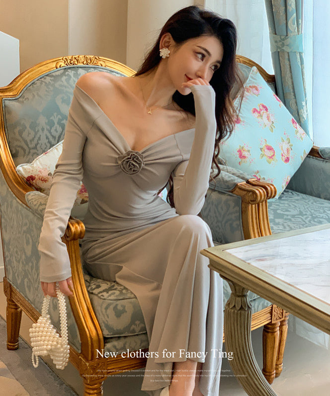 【2色】ロングドレス セクシー オフショルダー 谷間魅せ 指名 フリル 気質 XH2-ZED889648GT347