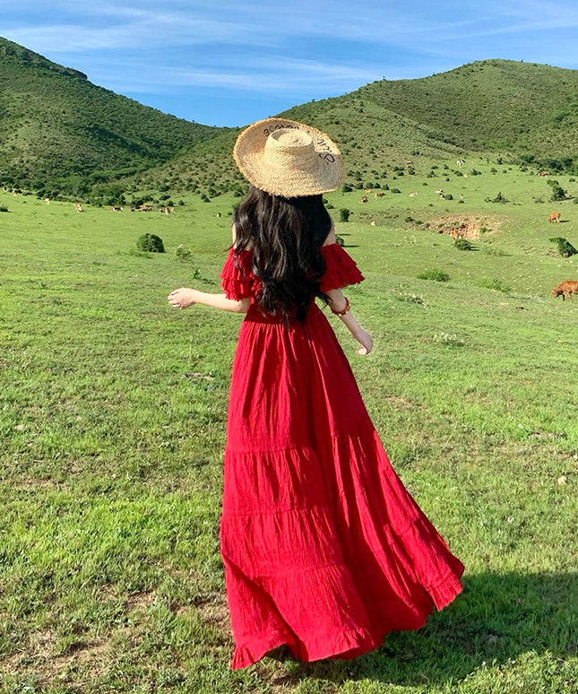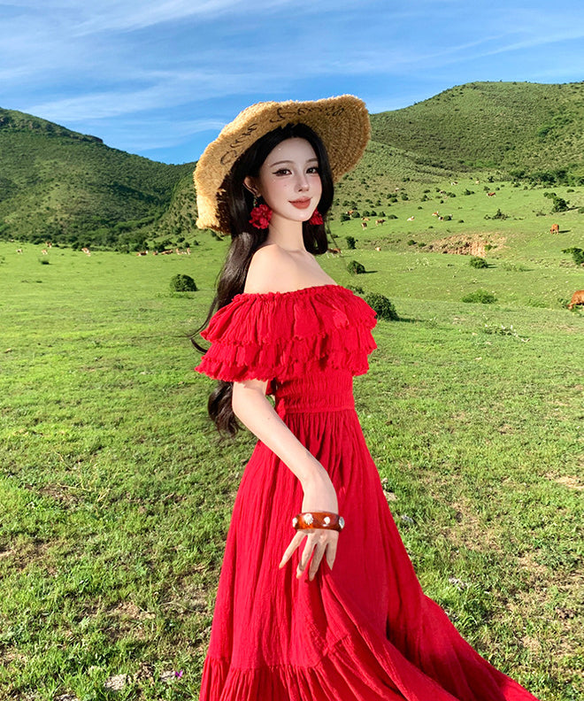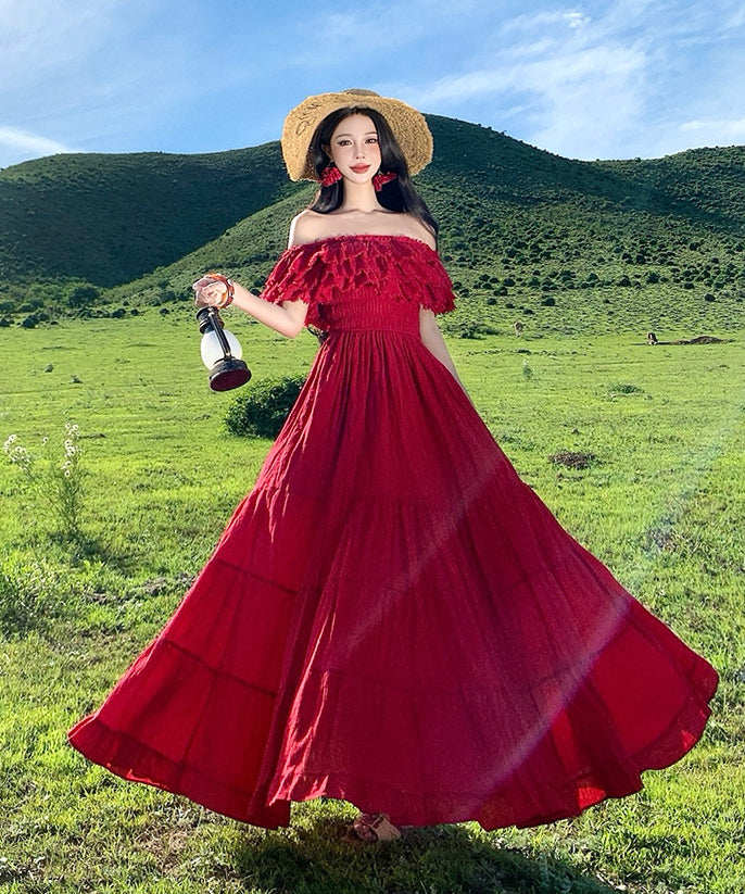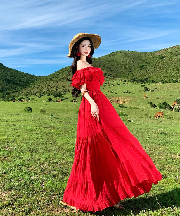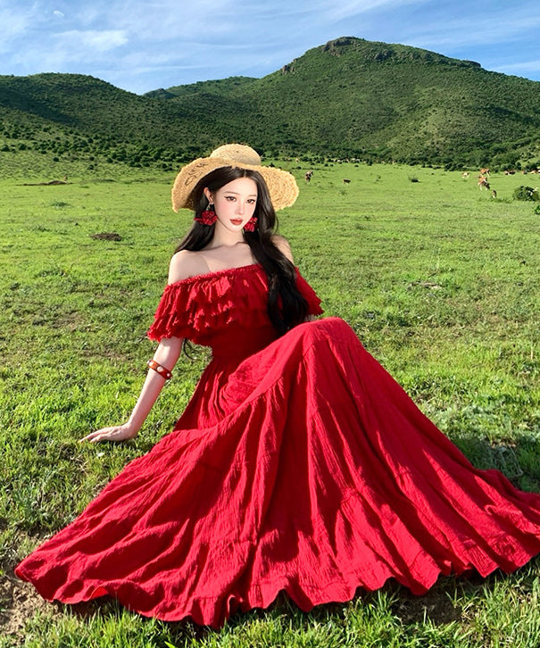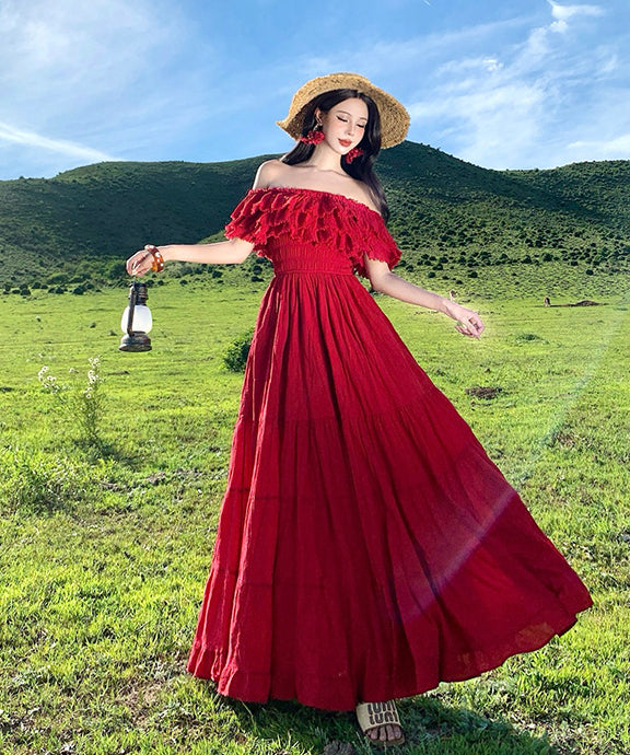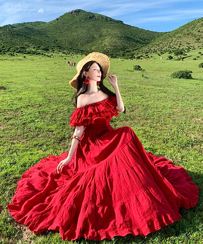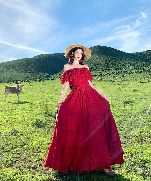 【2色】ロングドレス セクシー フェミニン 華やか フリルオフショルダー ウエストシェイプ 大きなフレアスカート 上品シルエット パーティー JC2-CD1-119-99260700