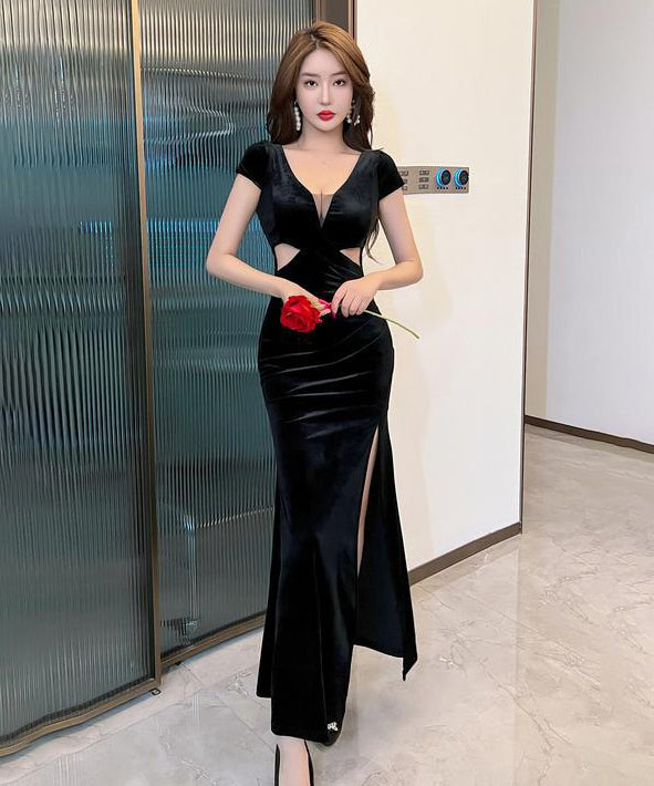 【2色】ロングドレス ナイトドレス 宴会 エレガント 谷間見せ セクシー スリート キャバクラ 指名 気質 XH2-DD5377