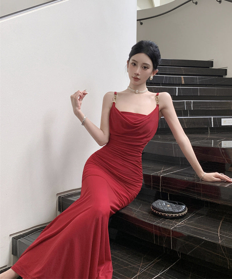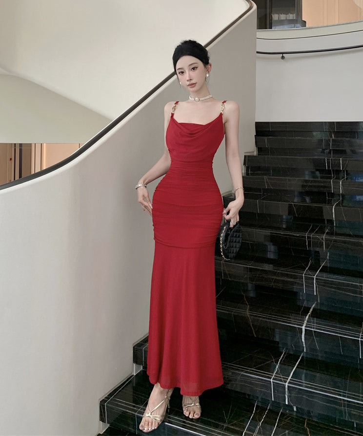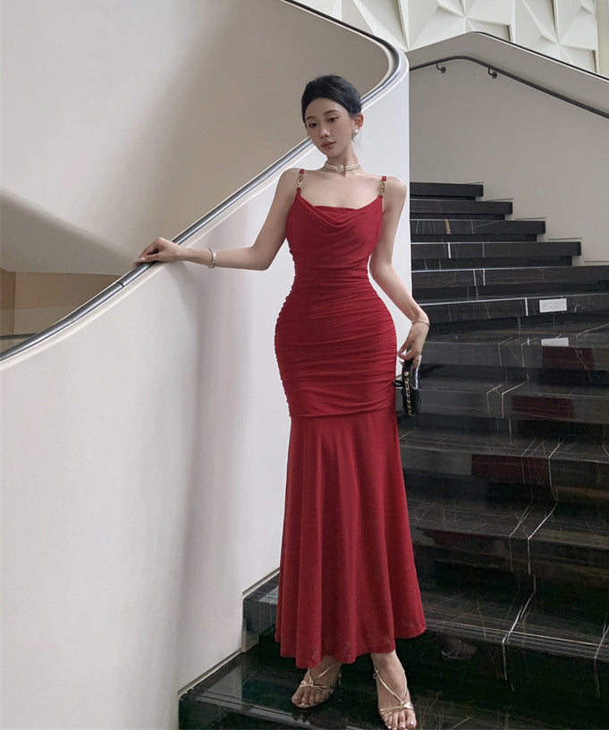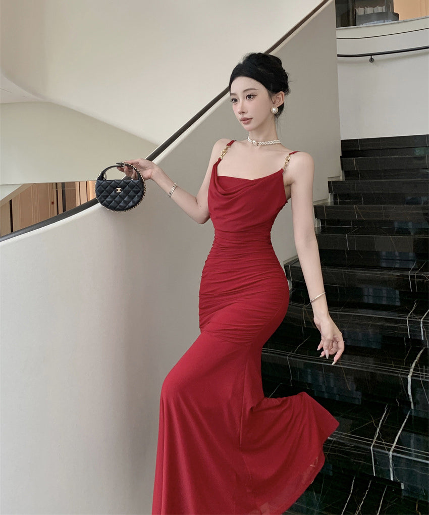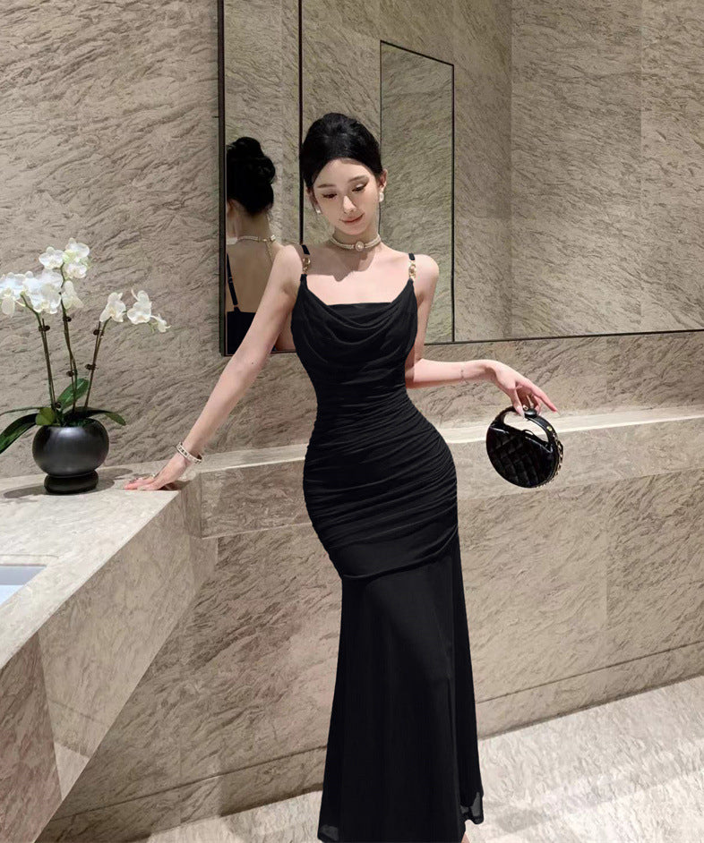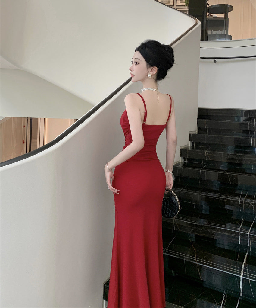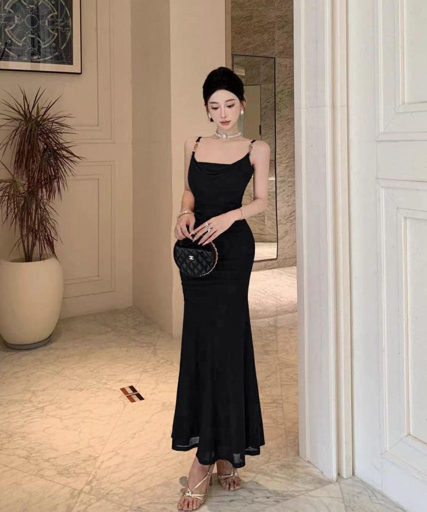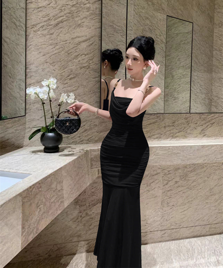 【2色】ロングドレス 肌見せ マーメイド エレガント 気質 宴会 袖付き XH2-ZED885532DXH238B