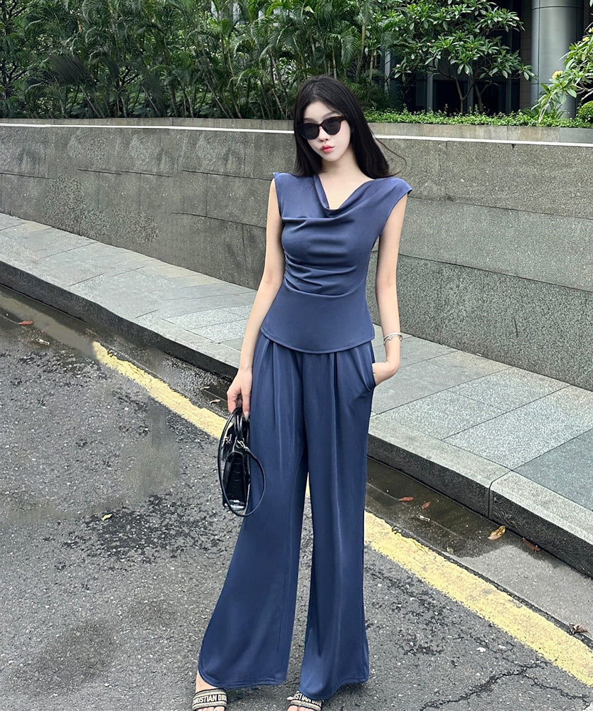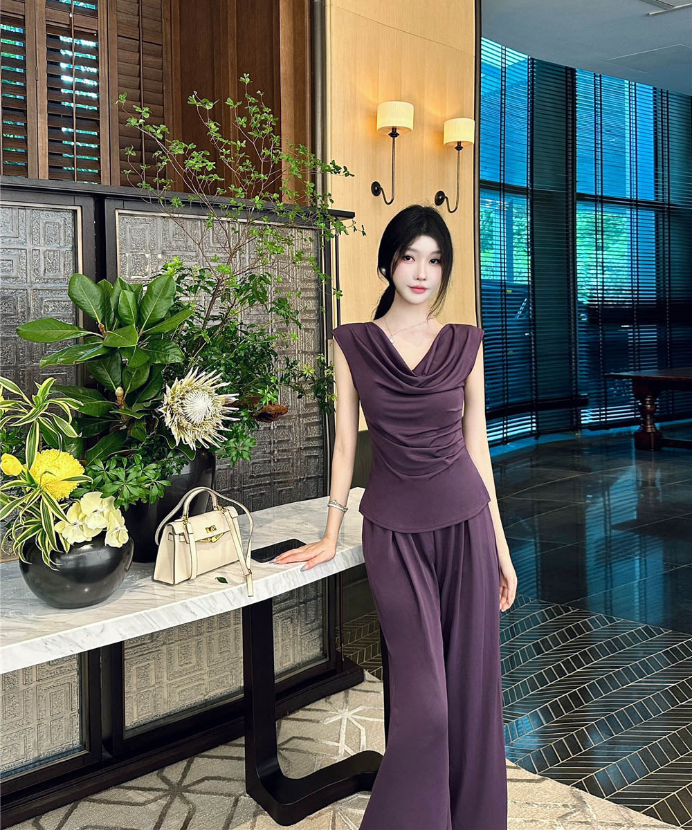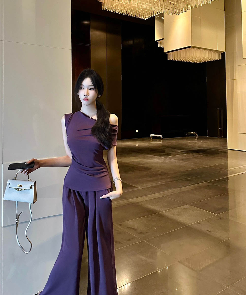 【2色】上下セットワイドパンツエレガントセクシーオフショルダー通勤女子力着痩せ気質同伴個性感 WQ2-DD4818
