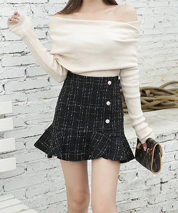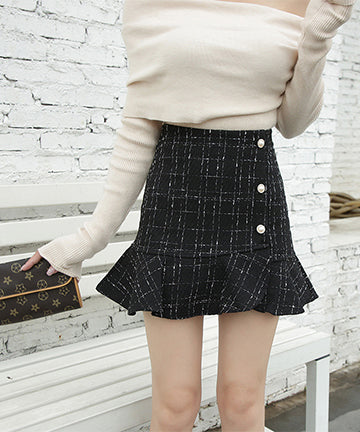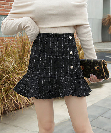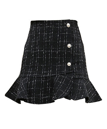 【2色】可愛い ミニドレス ツイード 非対称 フリル 秋新作 女子力 コーデ万能 XH2-YL3013