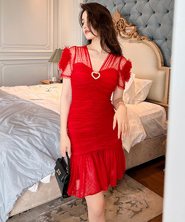 2色 水玉 チュール ロングドレス 高級感 可愛い パーティー 二次会 LT2-JY10102