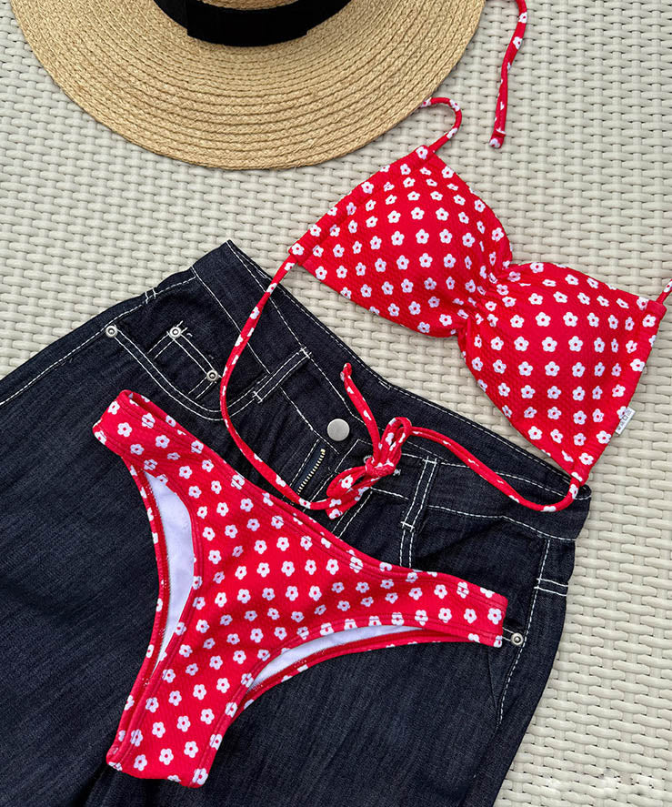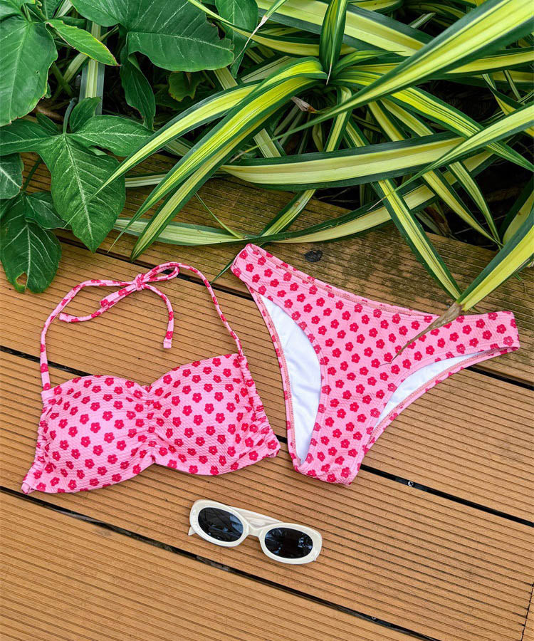 【2色】水着ビキニホルターネック花柄セクシーSNS話題旅行温泉ビーチ海 WQ7-CF-QM9134