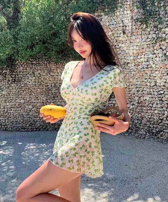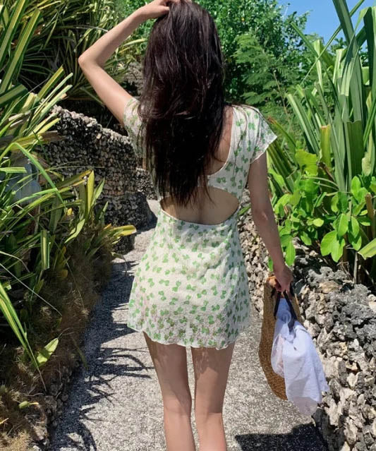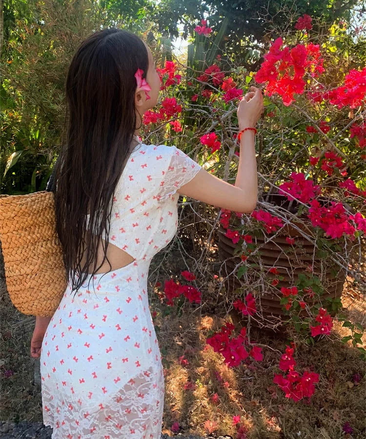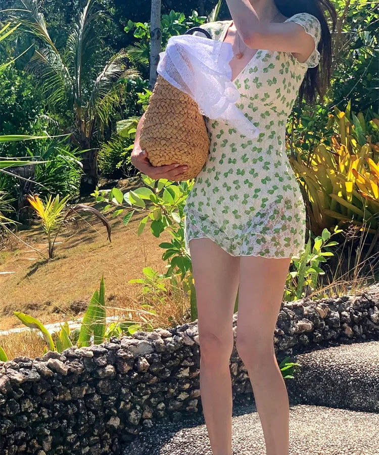 【2色】水着ビキニワンピース花柄Vネックリボンカワセクシー温泉ビーチ海レース WQ7-JX243052JX65