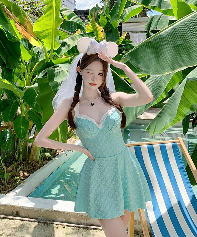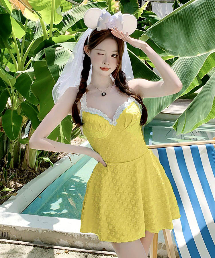 【2色】水着ビキニワンピースAライン体型カバー露出控え着痩せ気質フラワーカワセクシー WQ7-BY-WX001