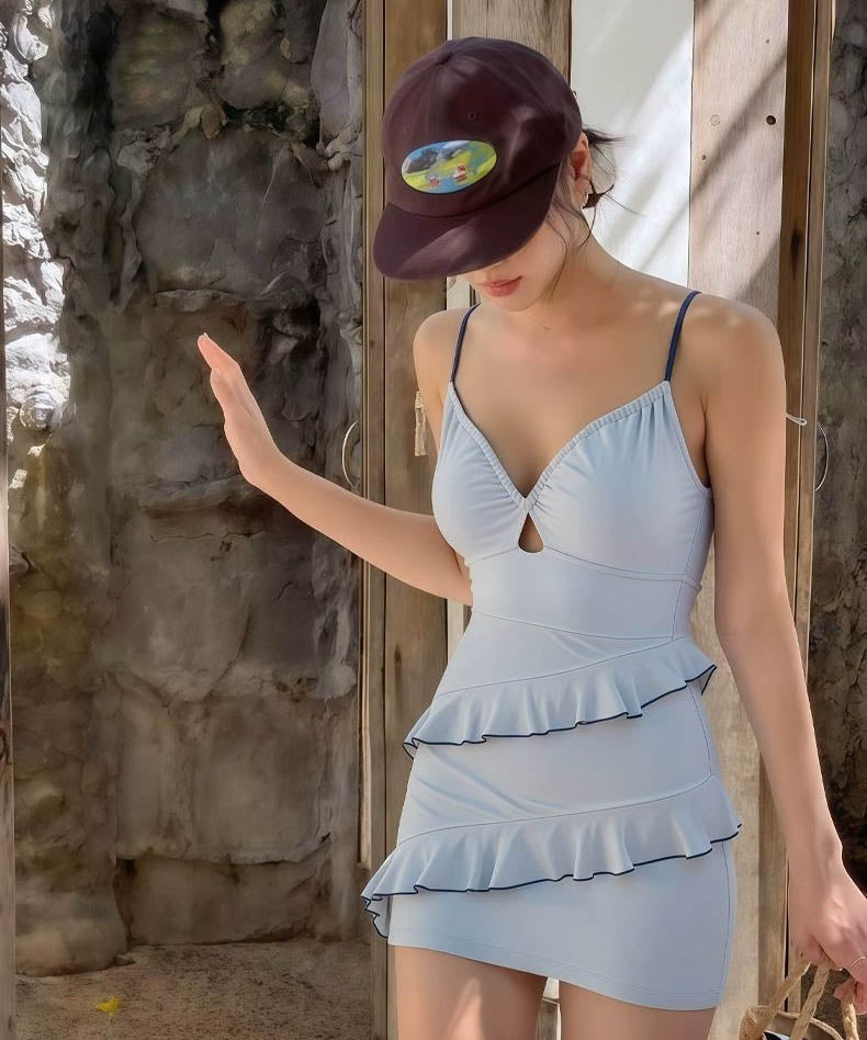 【2色】水着モノキニビキニワンピースフリル着痩せ気質温泉ビーチ海露出控えカワセクシー WQ7-WX685