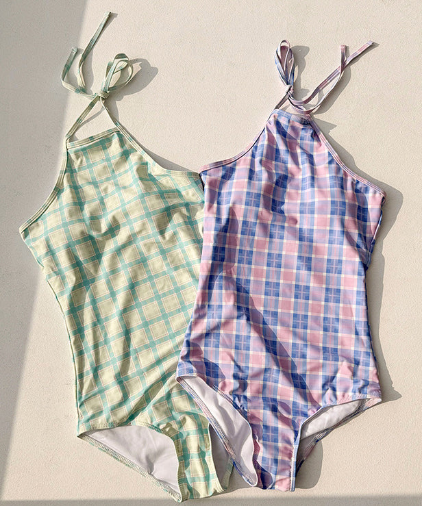 2色 水着 ホルターネック モノキニ チェック 体型カバー ビキニ 着痩せ YH7-XYX-Q2850