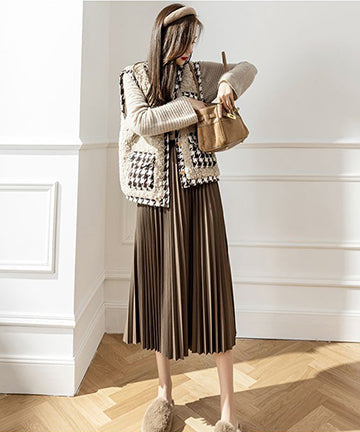 【2色】秋新作 プリーツスカート 可愛い キャバ嬢 同伴 Aライン 着瘦せ XH2-CYFZ001