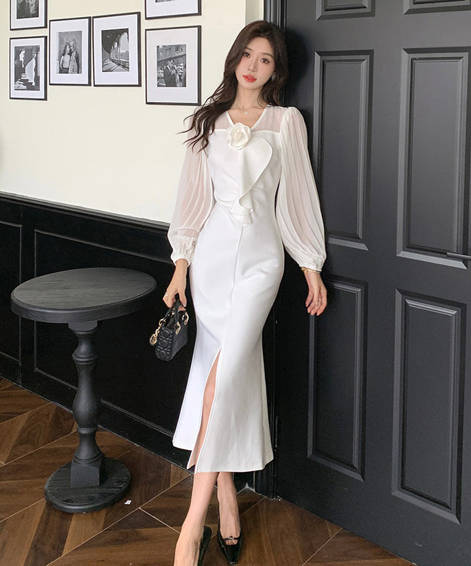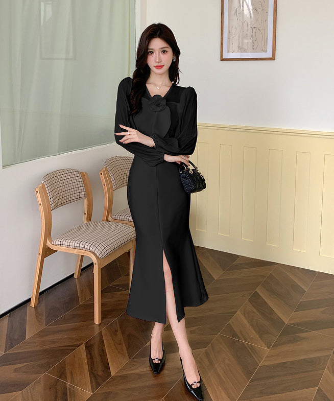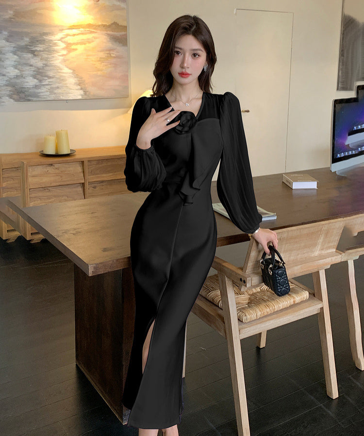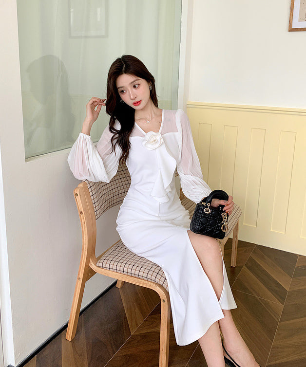 【2色】膝丈ドレス エレガント キャバドレス フラワー 気質 おしゃれ XH2-ZED889815GT347