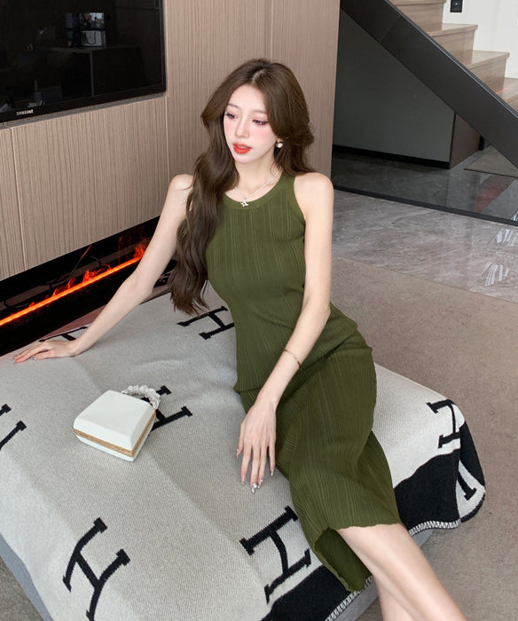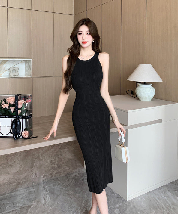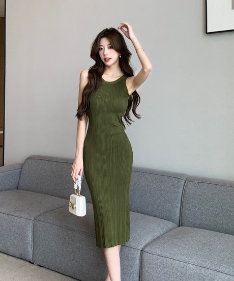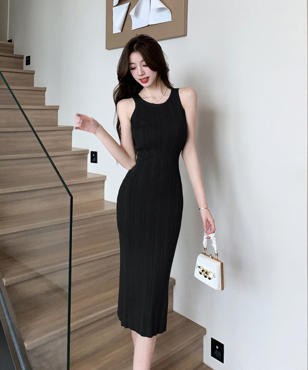 【2色】膝丈ドレス キャバドレス ニット セクシー ホルターネック YH2-ZED883323GT510